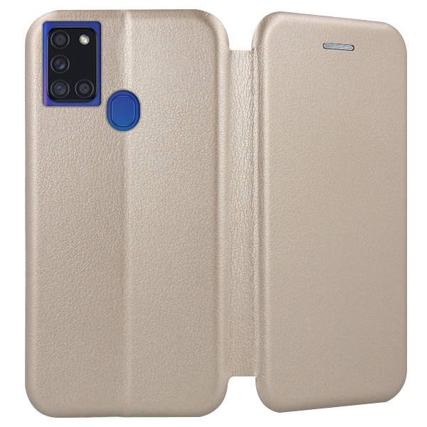 Gold-colored flip case for Samsung Galaxy A217 A21s models, which provides premium protection and elegance.