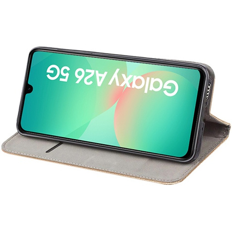 Auksinis atverčiamas dėklas Samsung A266 A26 5G „Smart Magnet”