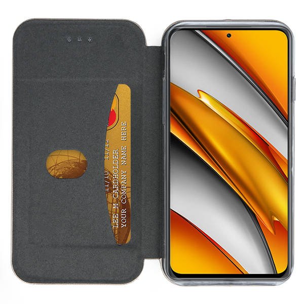 Auksinis atverčiamas dėklas Xiaomi Poco F3 „Book Elegance”