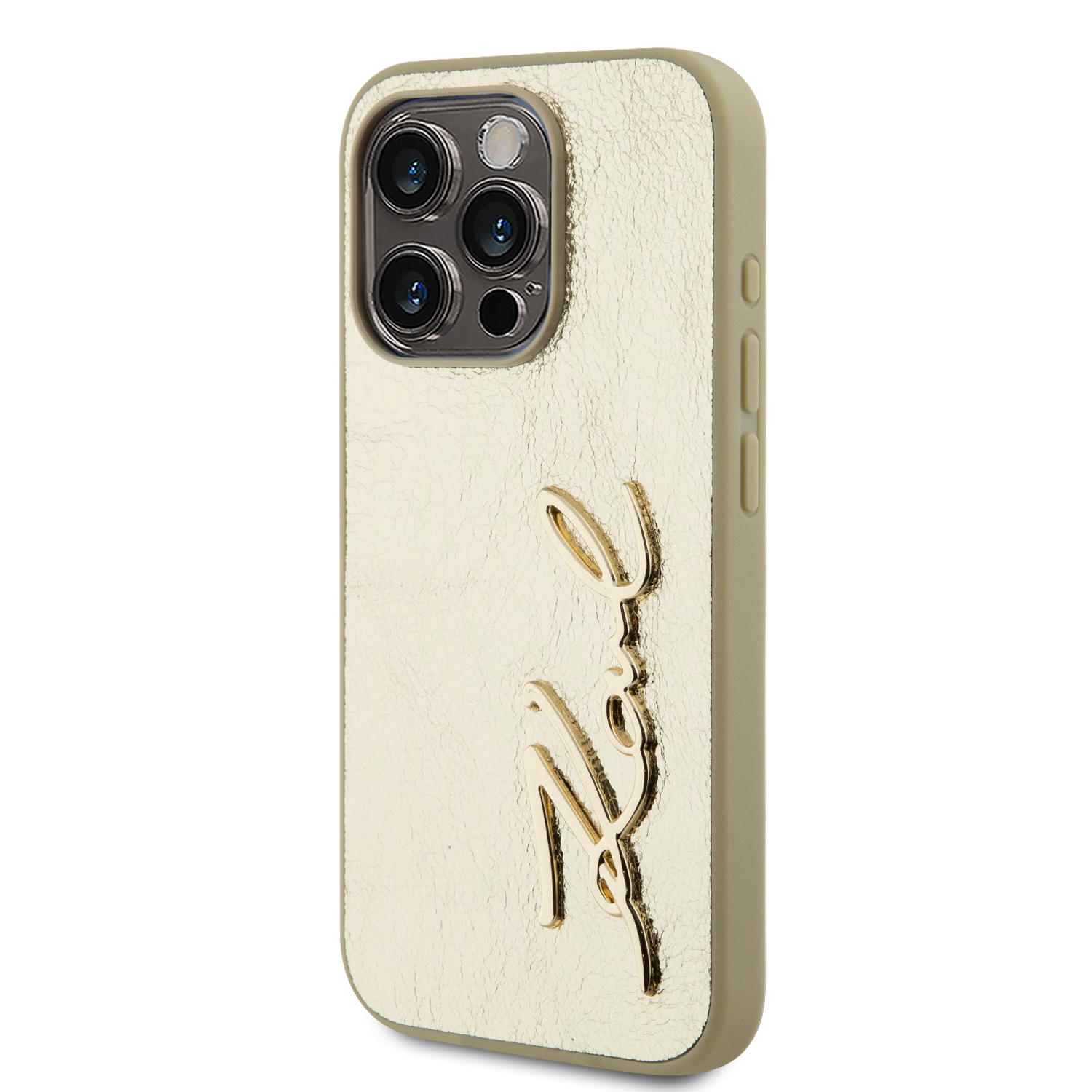 Auksinis dėklas Karl Lagerfeld Wrinkled PU Signature Logo telefonui Apple iPhone 15 Pro suteikia aukščiausią apsaugą ir išskirtinį stilių.