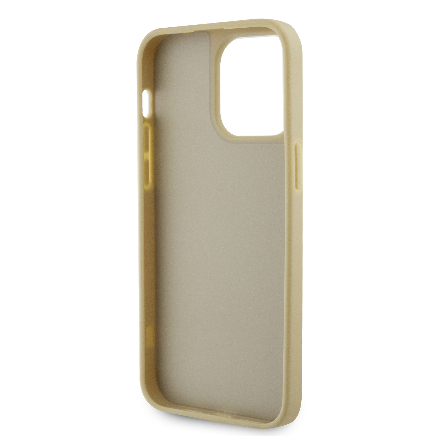 Auksinis originalus dėklas Guess Rhinestones Triangle Metal Logo telefonui Apple iPhone 15 Pro Max
