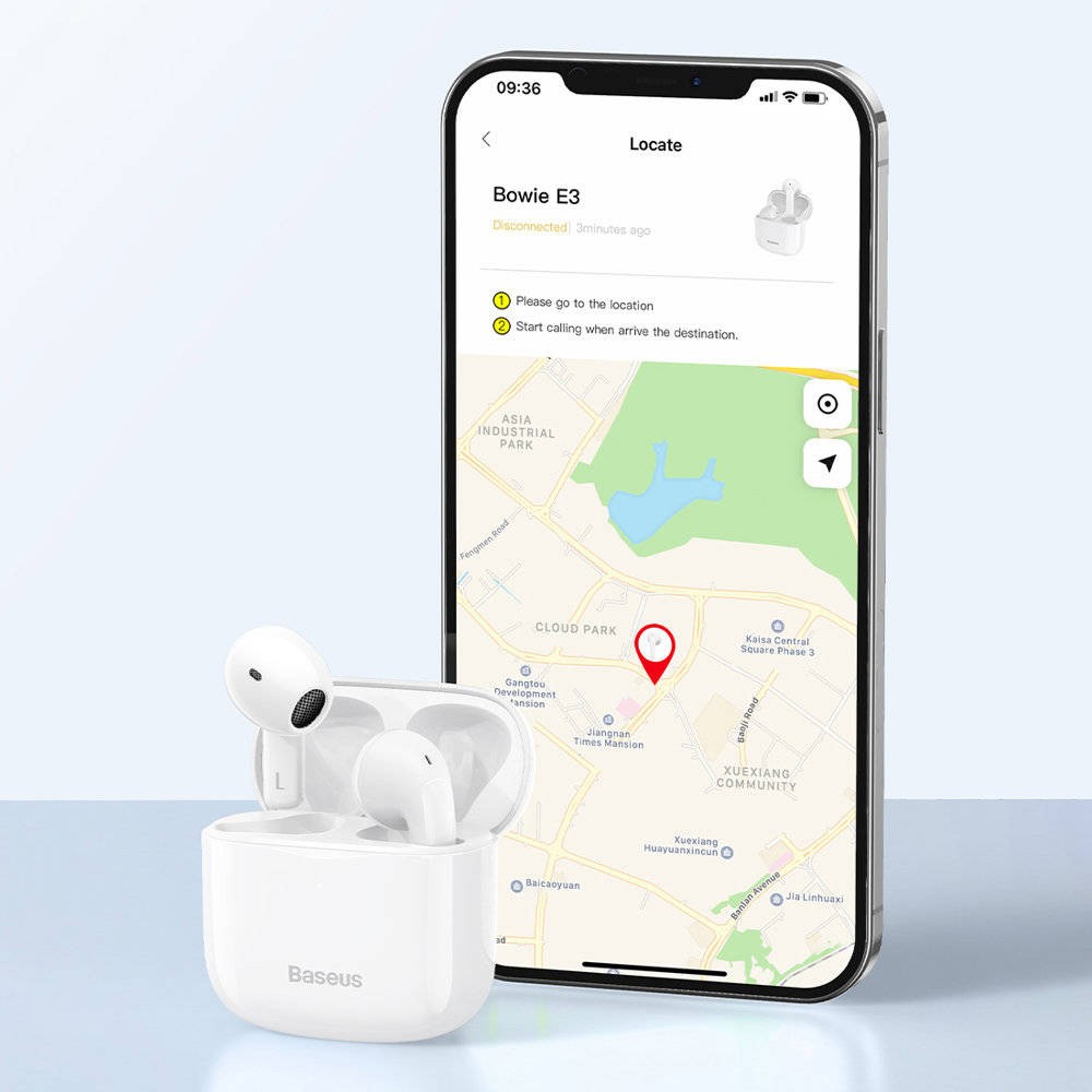 Greitas automatinis prisijungimo atsakas: atidarykite dangtį ir uždėkite juos, kad automatinio ryšio dėka iš karto klausytumėte muzikos. Vietos nustatymas naudojant programėlę: įrašykite paskutinės atjungtos ausinių vietą, skambinkite ir ieškokite ausinių, pavadinkite ausines ir daugiau funkcijų „Baseus“ programėlėje.