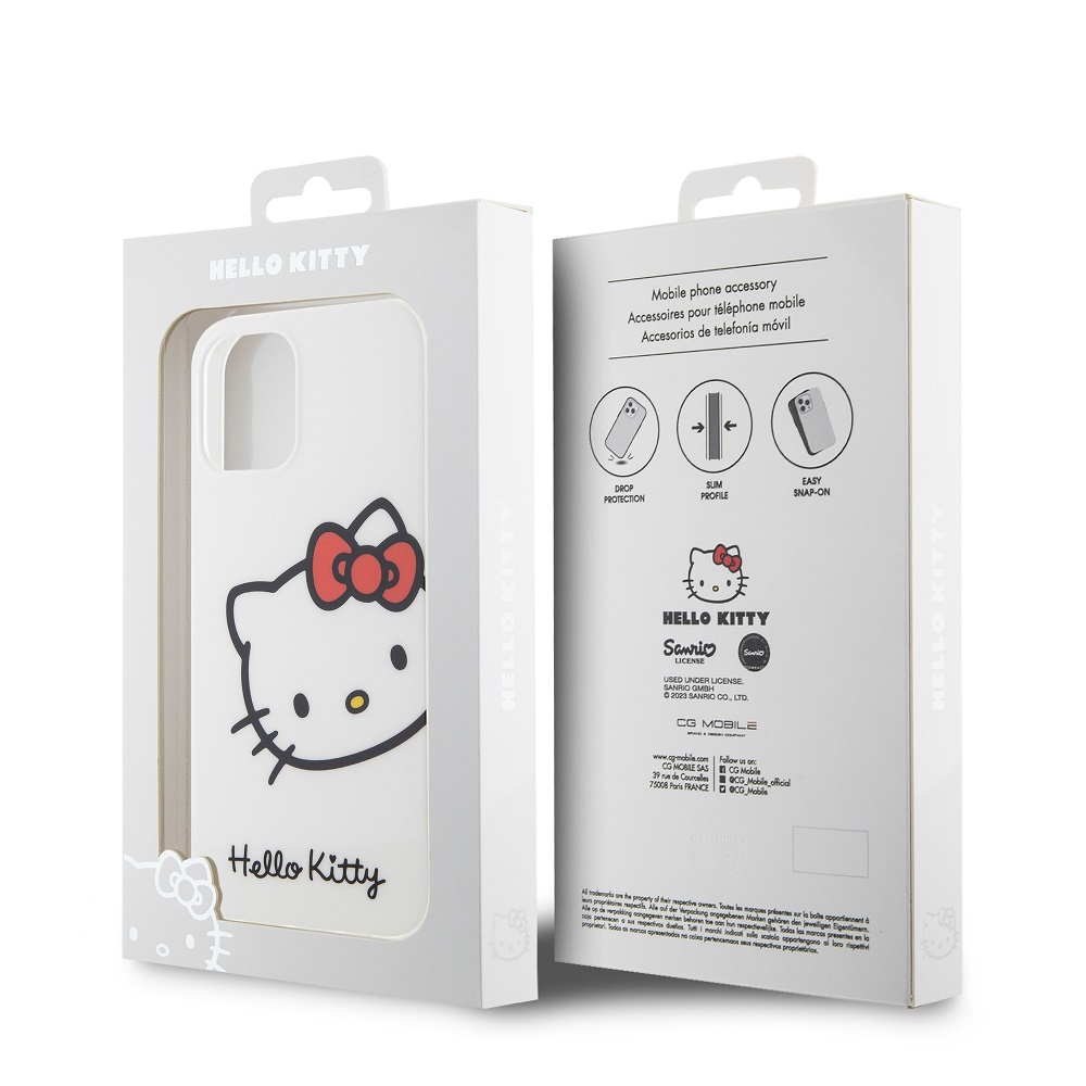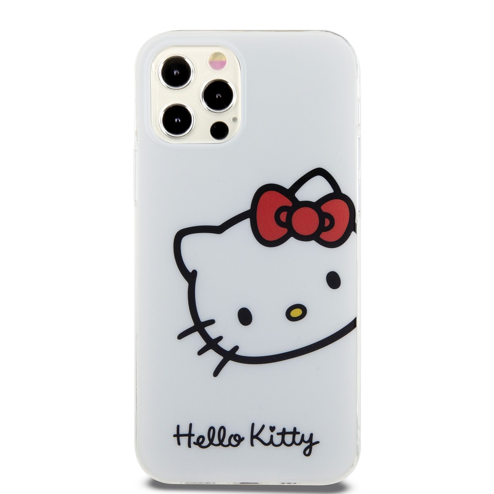 Baltas dėklas Hello Kitty IML Head Logo telefonui Apple iPhone 12 / 12 Pro