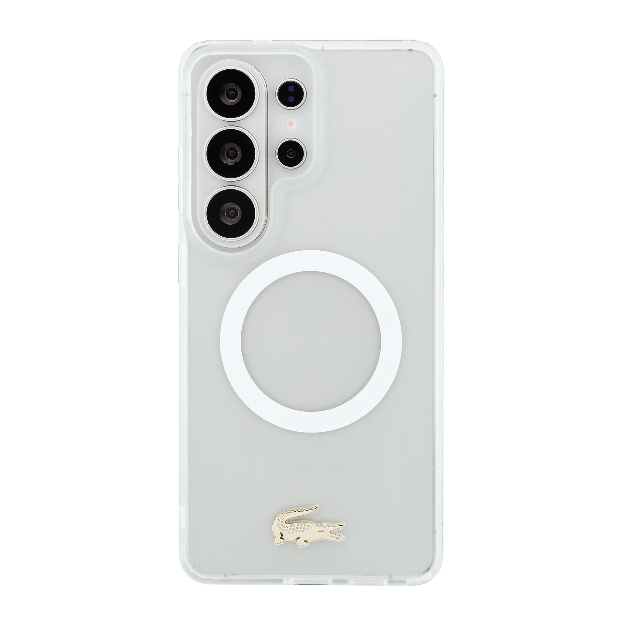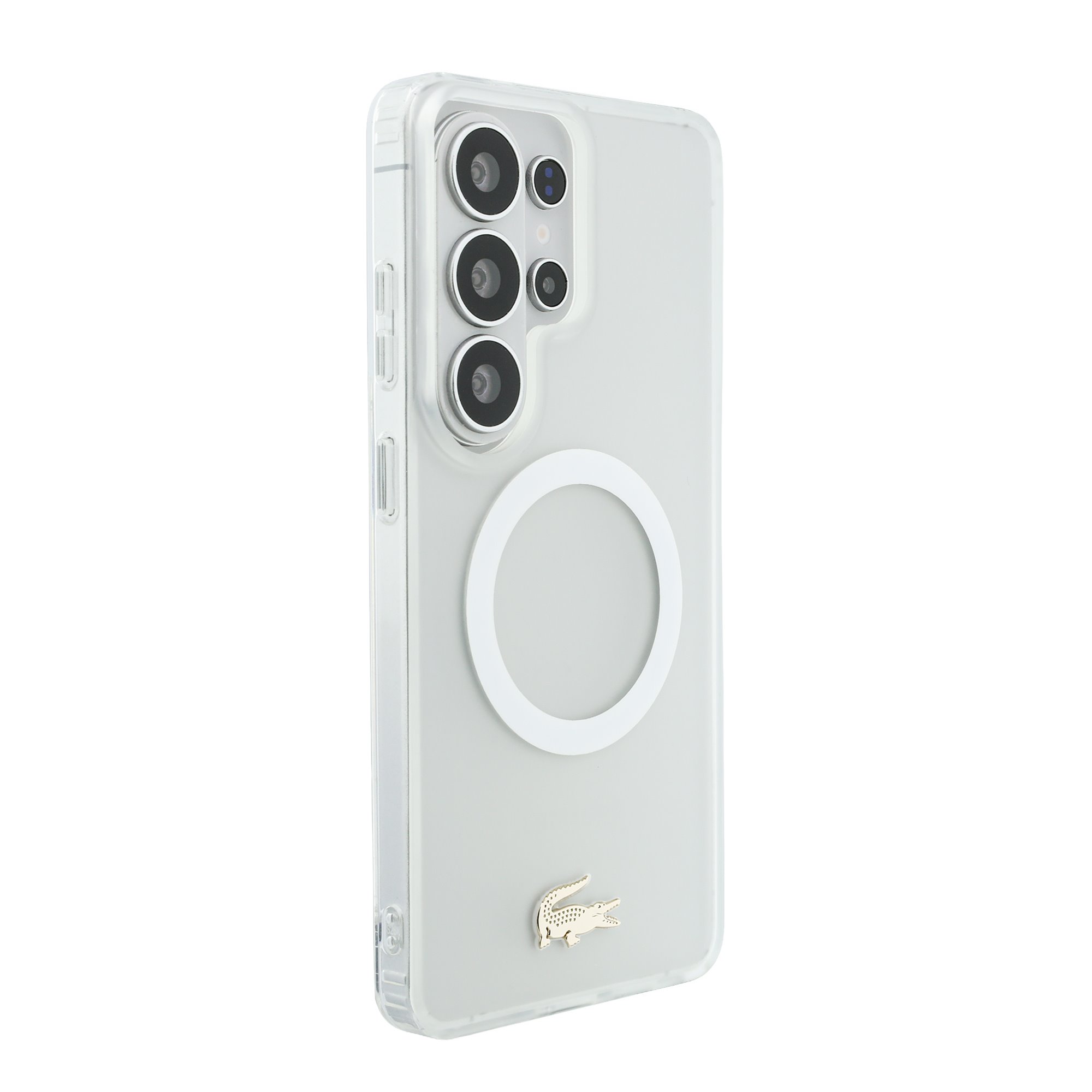 Baltas dėklas Samsung Galaxy S26 Ultra „Lacoste PC/TPU Frosted Finish Gold Logo MagSafe”