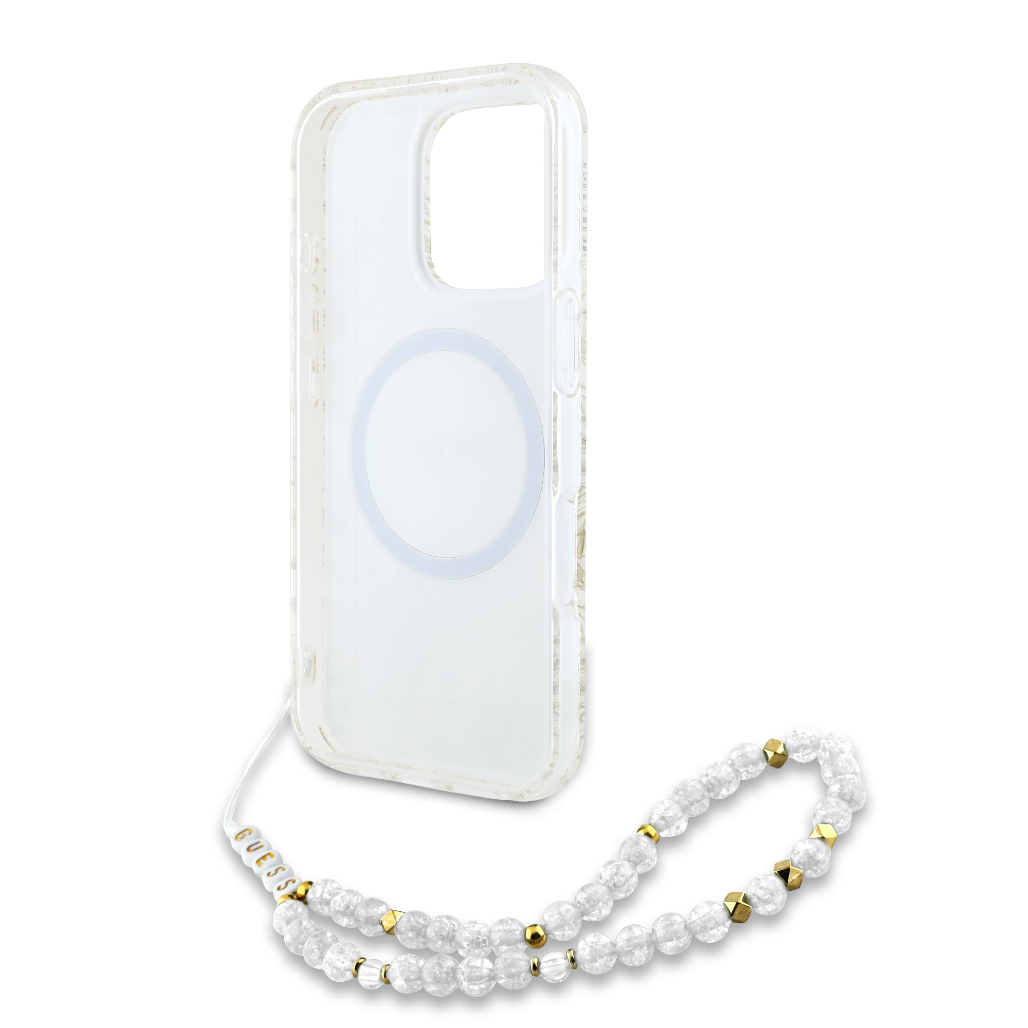 Dangtelio dizainas išsiskiria auksiniame apskritime esančiu „Guess” logotipu, todėl jis yra ne tik praktiškas, bet ir stilingas aksesuaras, puikiai papildantis jūsų aprangą.
