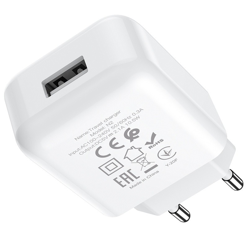 Baltas įkroviklis Hoco N2 10W USB-A