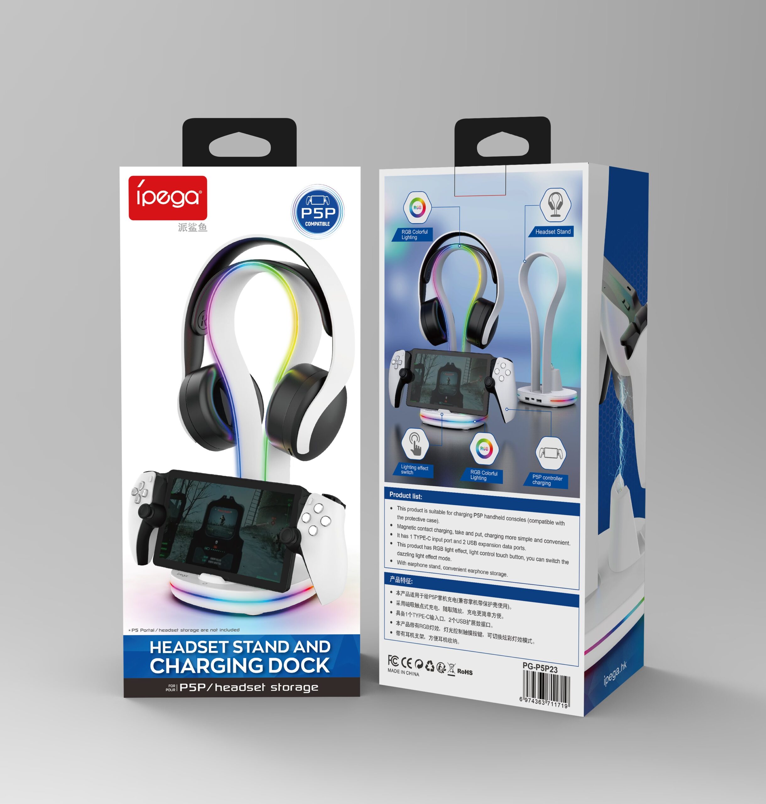 iPega P5P23 RGB įkrovimo stovas skirtas Playstation Portal Remote Player žaidėjui ir suteikia patogų įkrovimą bei papildomą funkcionalumą. Stovas taip pat turi ausinių laikiklį, leidžiantį patogiai laikyti savo ausines žaidžiant arba poilsio metu.