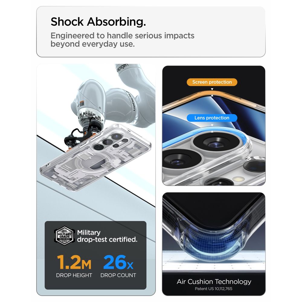 Spigen Ultra Hybrid dėklas, kuriame dera minimalistinis dizainas ir aukščiausio lygio apsauga.