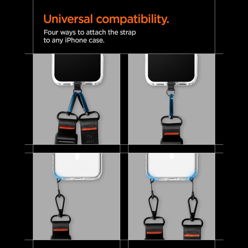 Tai leidžia pritvirtinti dirželį praktiškai prie bet kokio dėklo, nepriklausomai nuo jo tipo ar gamintojo.