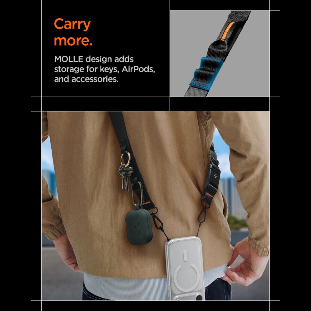 Spigen DA30M dirželis — daugiafunkcis 2 viename sprendimas.
