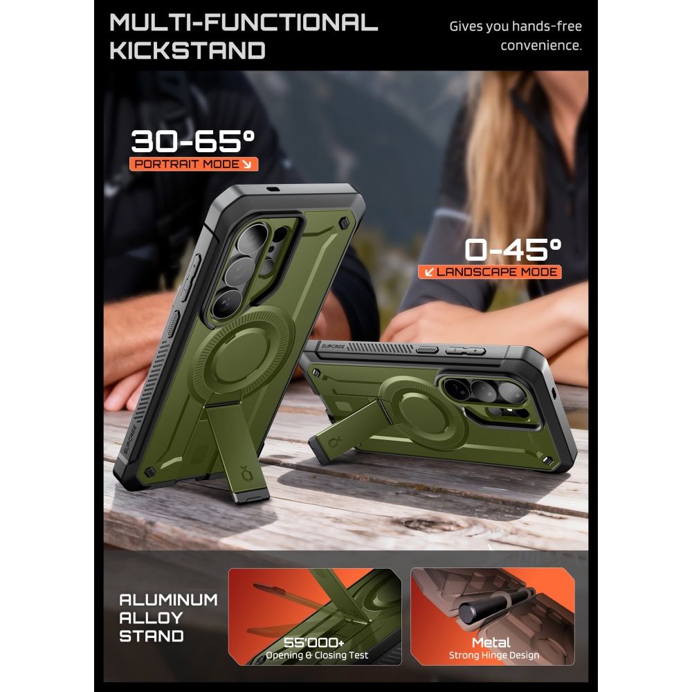 Guldan dėklas Samsung Galaxy S26 Ultra „Supcase Unicorn Beetle Pro Mag MagSafe“ – tai pilnas viso kūno apsaugos sprendimas, jungiantis šarvuotą apsaugą su „MagSafe“ universalumu.