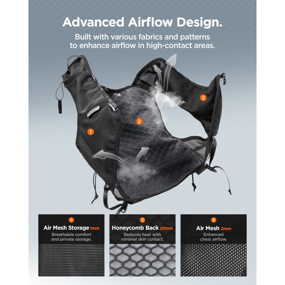 „Spigen A721 Dynamic Shield“ – tai lengva 5 litrų bėgimo liemenė, skirta aktyviems vartotojams, kurie vertina komfortą ir organizuotumą treniruočių metu.