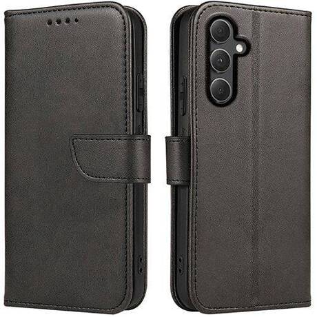 Juodas atverčiamas dėklas Samsung A546 A54 5G „Wallet Case” elegantiškas dėklas su atvartu ir stovo funkcija.