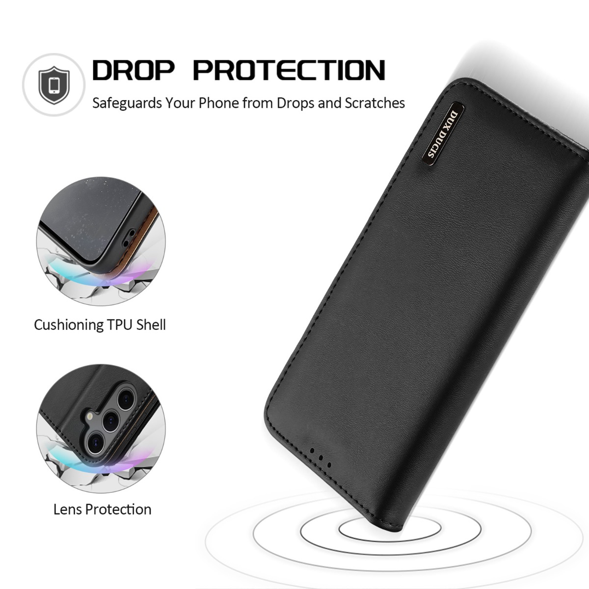 Galima paversti tvirtu stovu, kad galėtumėte atlaisvinti rankas žiūrint vaizdo įrašus. Minkštas galinis dangtelis ir magnetinio uždarymo dizainas užtikrina visišką jūsų išmaniojo telefono apsaugą.