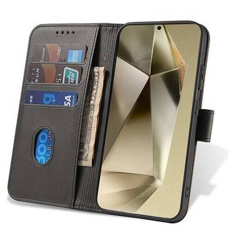 Juodas atverčiamas dėklas Samsung S928 S24 Ultra "Wallet" yra elegantiškas dėklas su atvartu ir stovo funkcija.