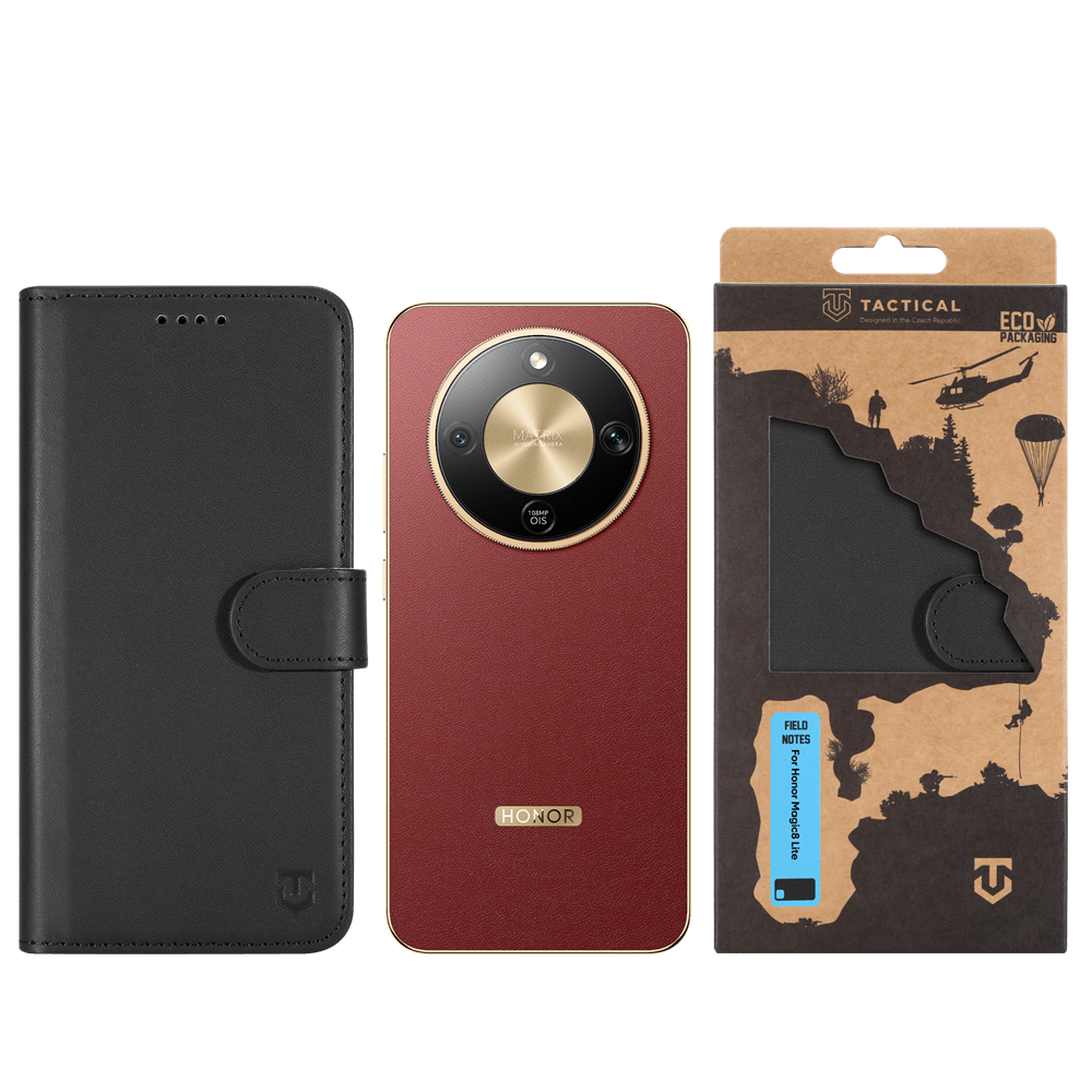 Juodas atverčiamas dėklas Tactical Field Notes telefonui Honor Magic 8 Lite