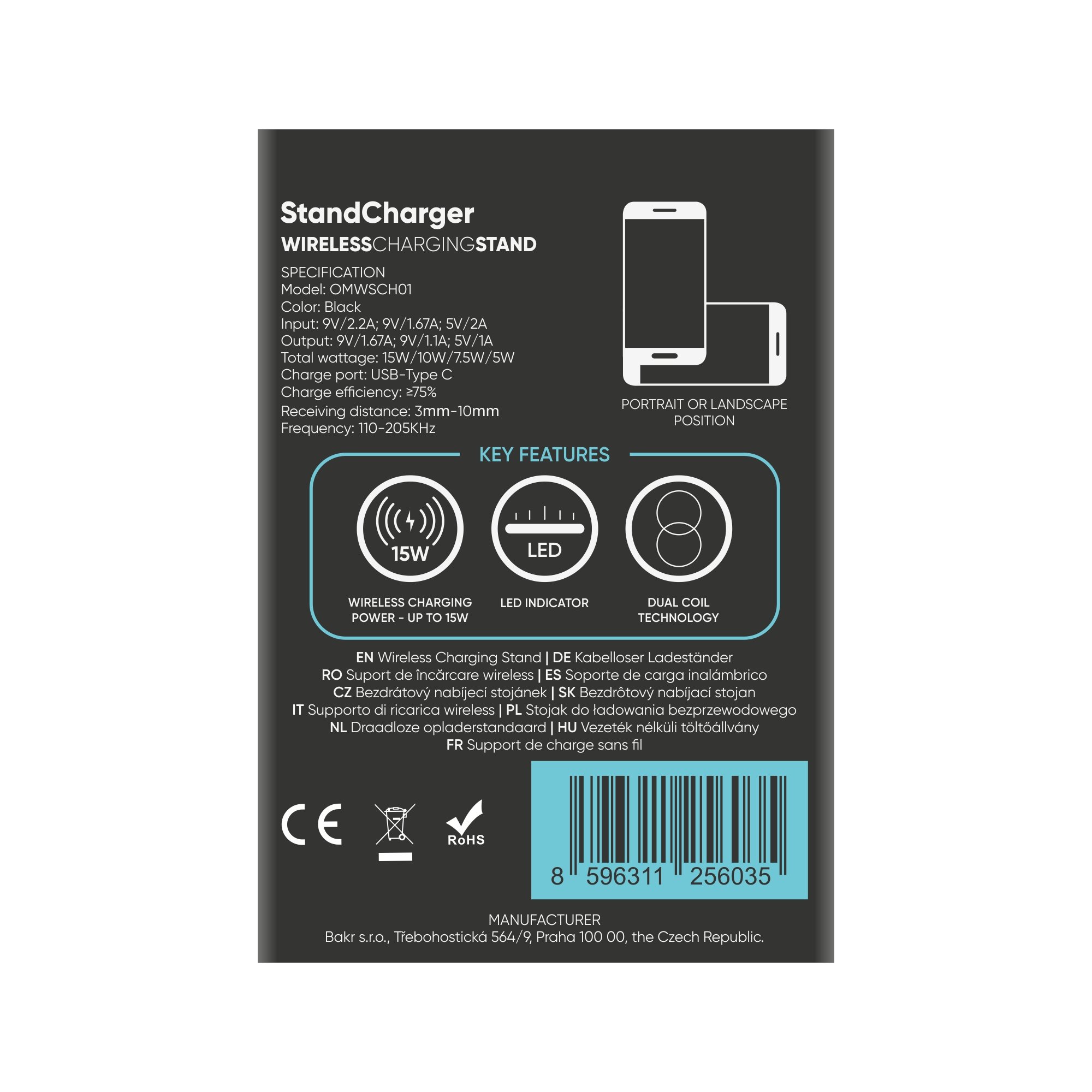 Juodas belaidis pakrovėjas OBAL:ME StandCharger Wireless Charging Stand 15W