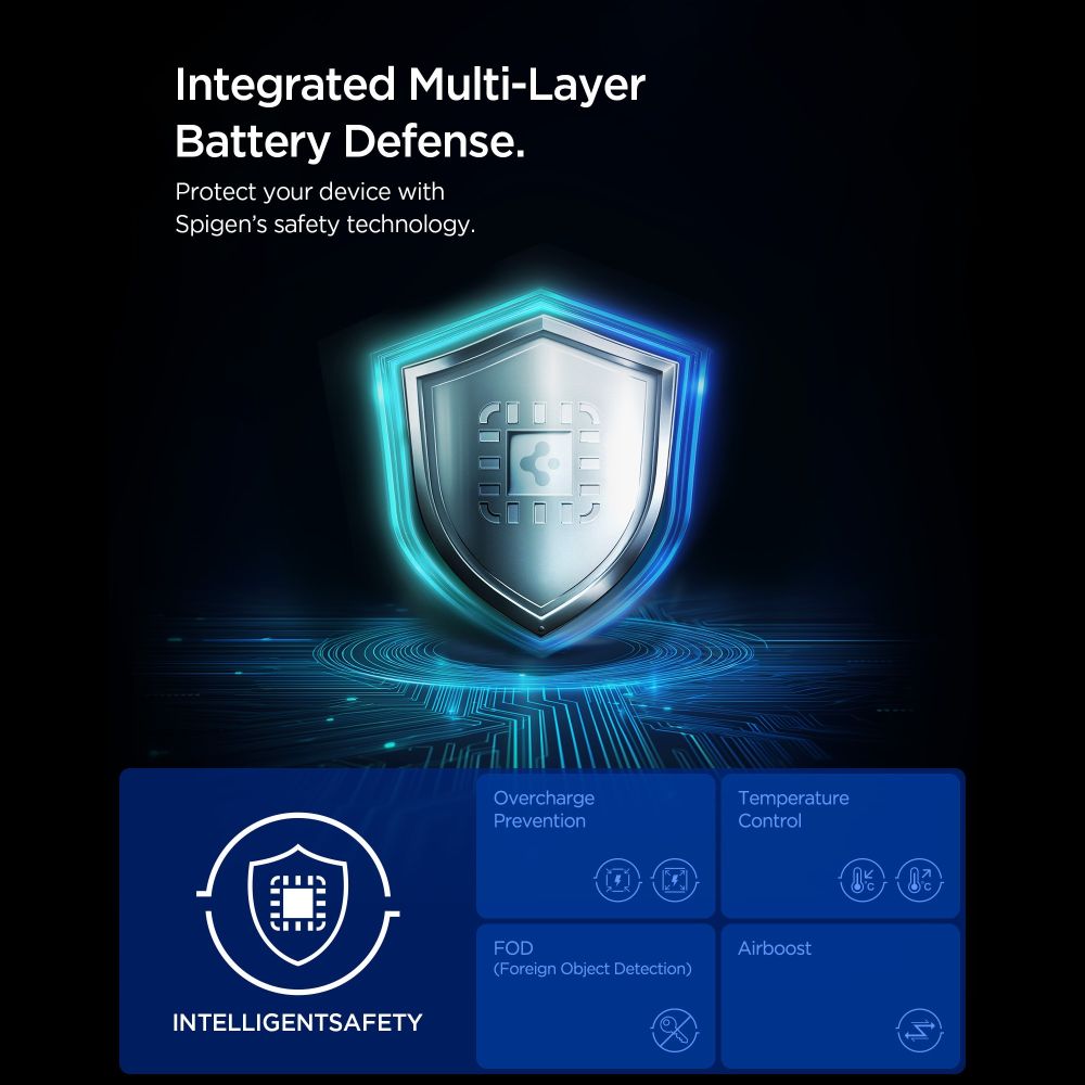 Stovas tvirtai laiko telefoną, pašalindamas pavojų, kad jis paslys ar apvirs. Įkroviklis aprūpintas pažangia išmaniąja saugos sistema: apsauga nuo perkrovos, temperatūros valdymas (perkaitymo prevencija), įtampos ir srovės reguliavimas pagal įrenginio poreikius, užtikrinant stabilų ir saugų įkrovimą.