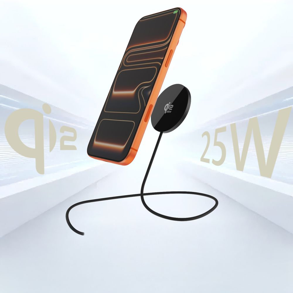 25 W galia galima įrenginiams, palaikantiems aukščiausią „Qi2.2“ profilį, todėl įkrovimo laikas yra žymiai trumpesnis, palyginti su standartiniais belaidžiais įkrovikliais.