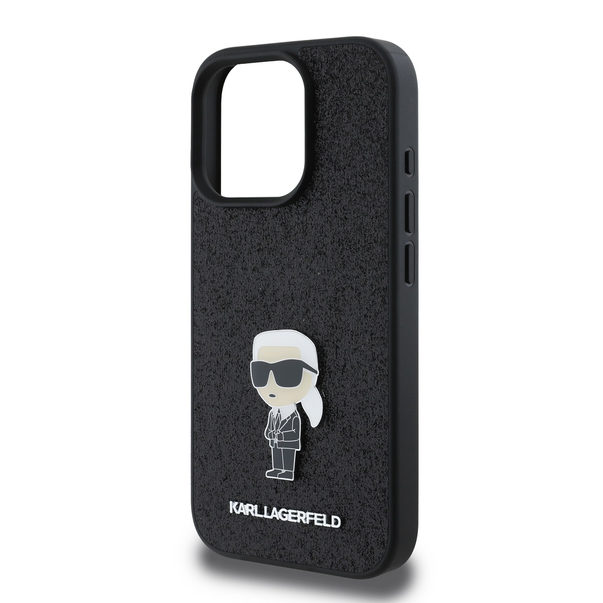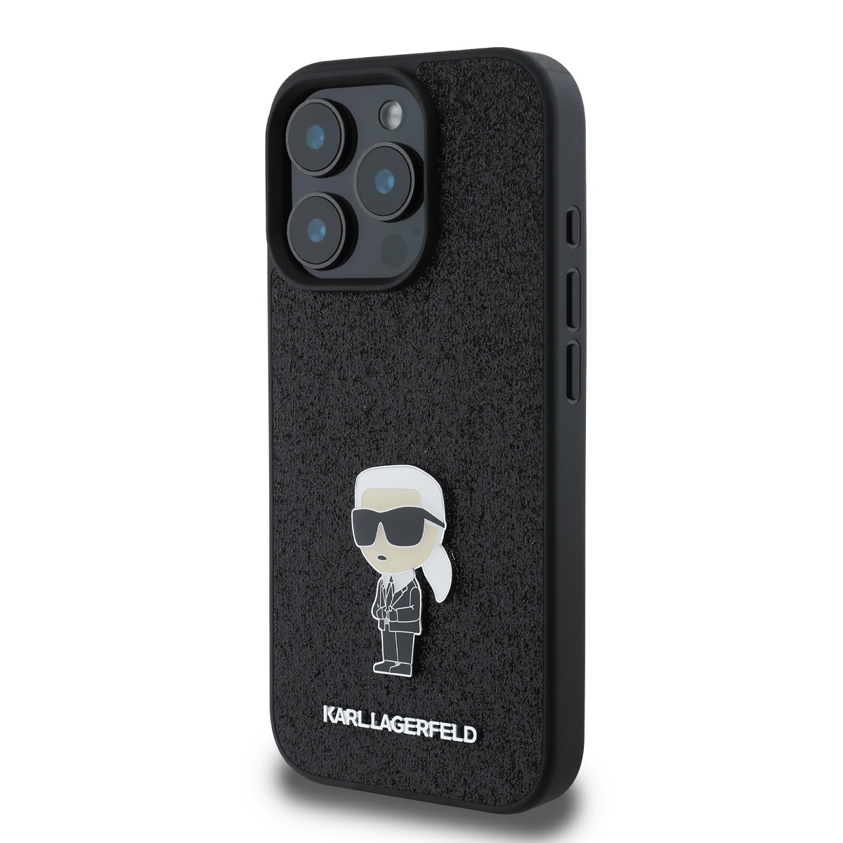 Juodas blizgantis originalus dėklas Karl Lagerfeld Fixed Glitter Metal Ikonik telefonui Apple iPhone 16 Pro