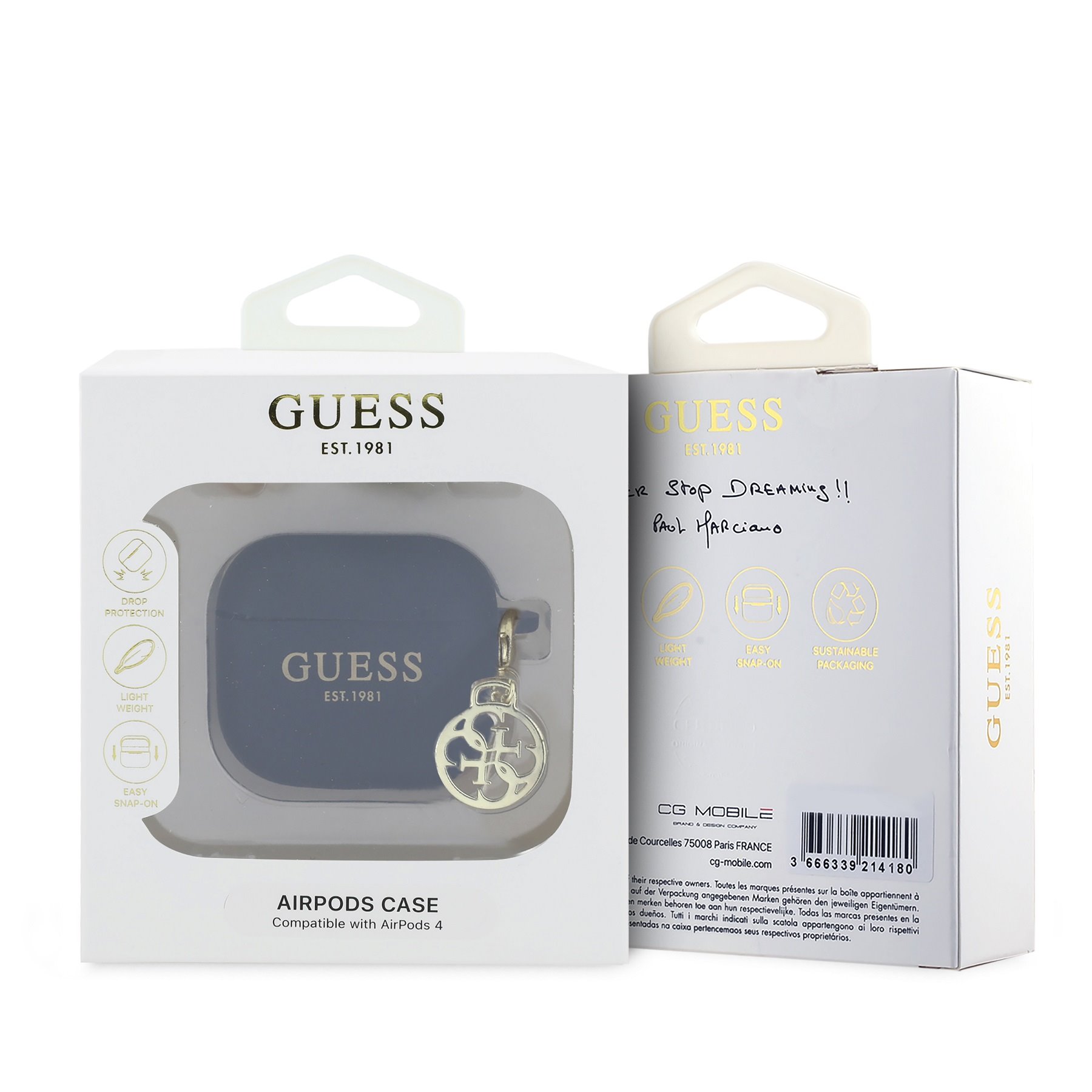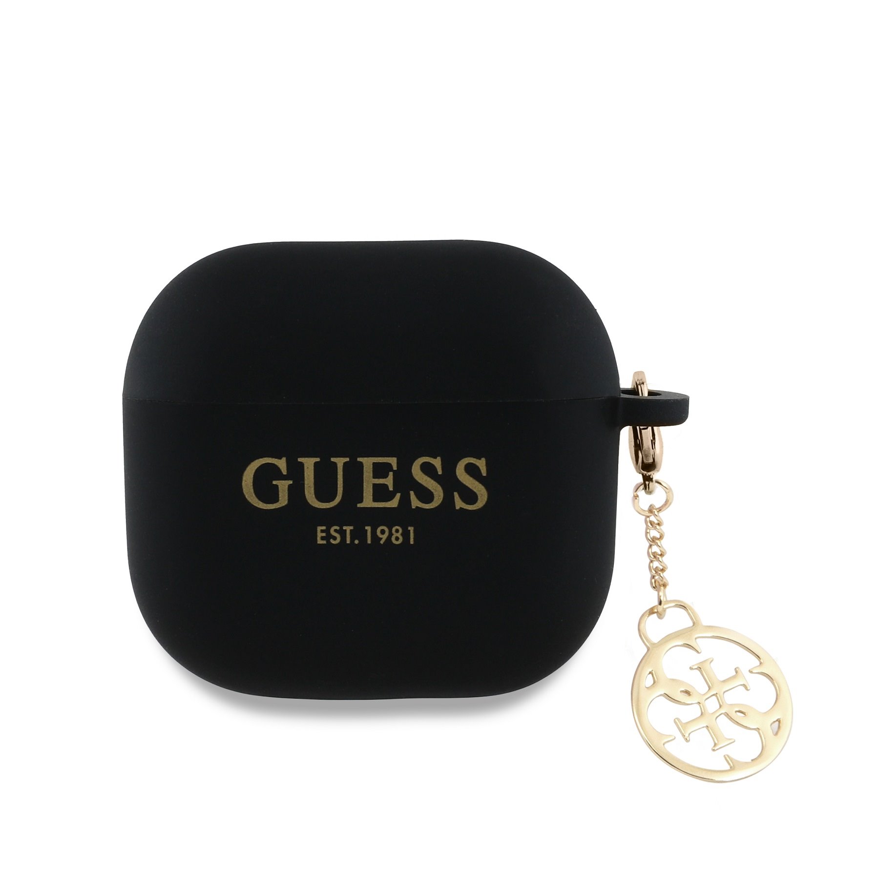 Juodas dėklas Airpods 4 „Guess 4G Charm Silicone”