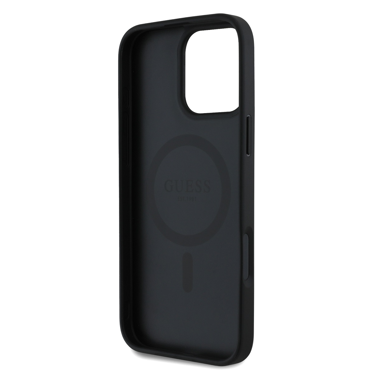 Juodas dėklas Apple Iphone 16 Pro Max „Guess PU Grained Magnolia MagSafe”