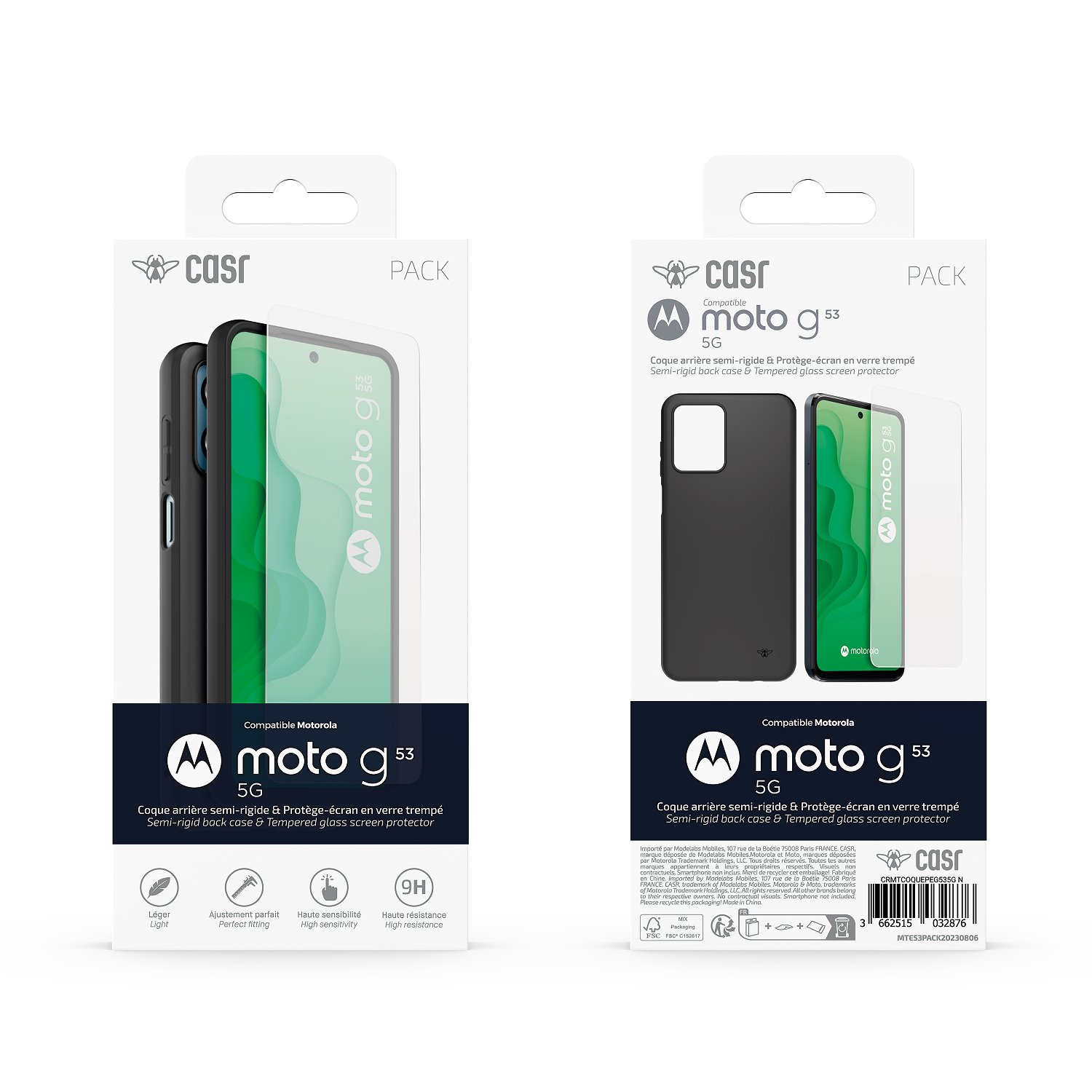 Juodas dėklas + apsauginis stiklas telefonui Motorola G53 5G Black „CASR TPU Cover + Tempered Glass”