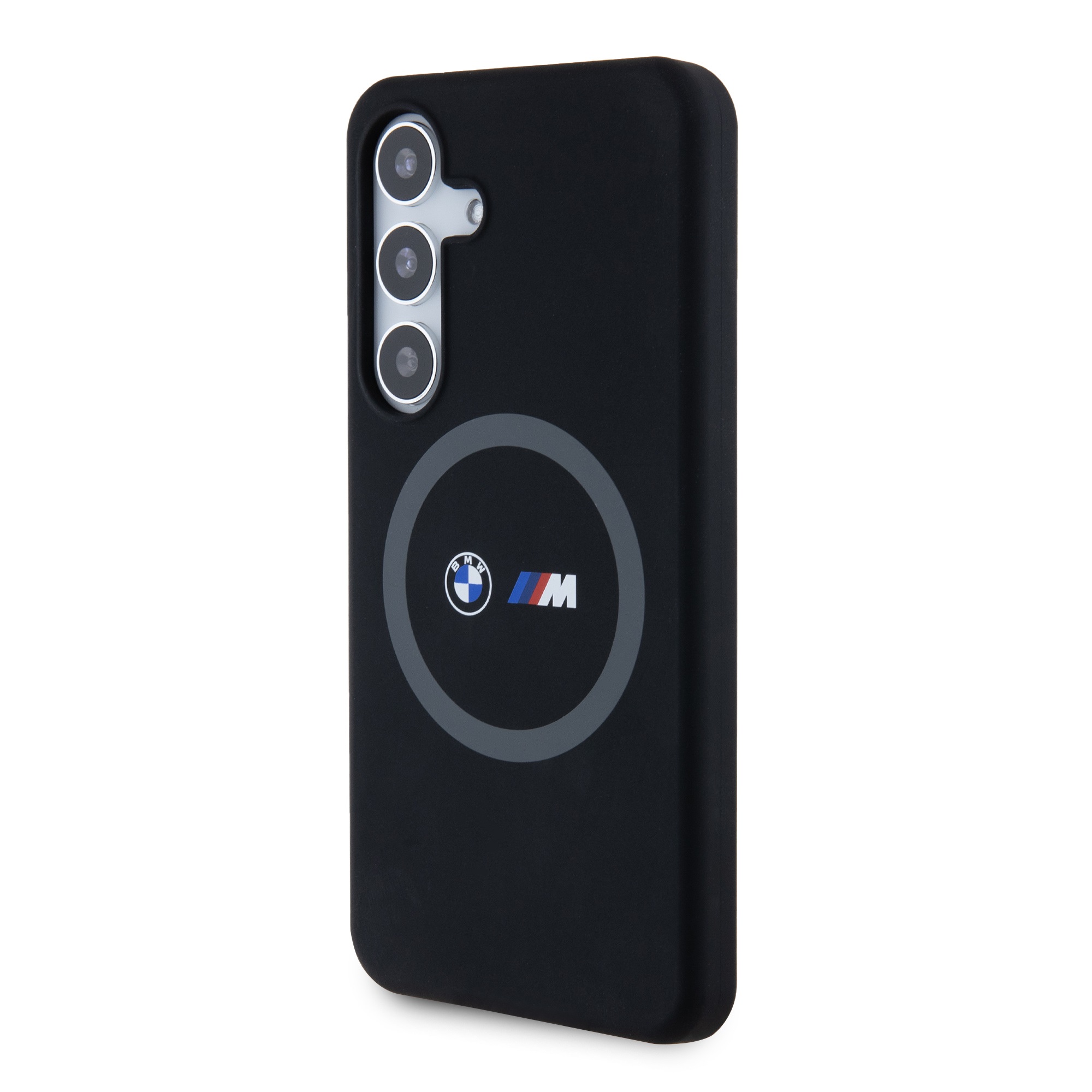 Juodas dėklas BMW M Printed Round and Logo Magsafe Silicone telefonui Samsung Galaxy S24