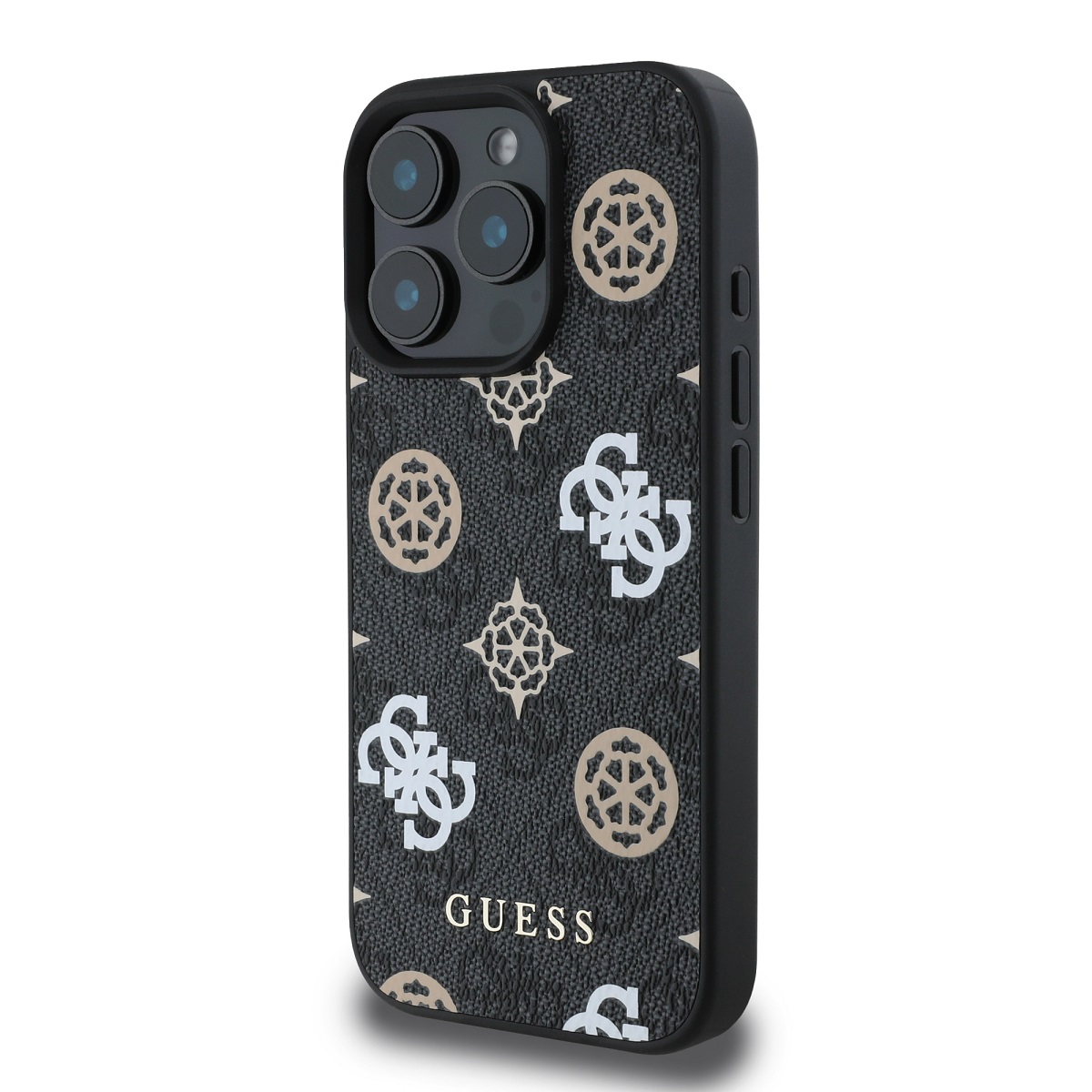 Juodas dėklas Guess PU 4G Peony MagSafe telefonui Apple Iphone 16 Pro