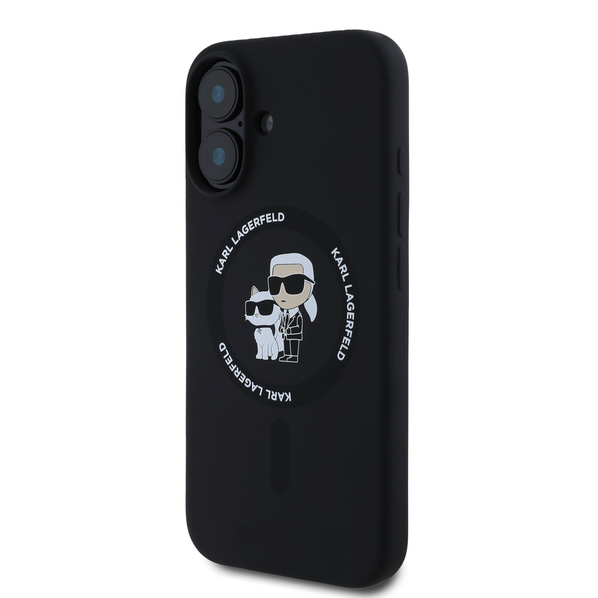 Juodas dėklas Karl Lagerfeld Liquid Silicone Karl and Choupette MagSafe telefonui Apple Iphone 16