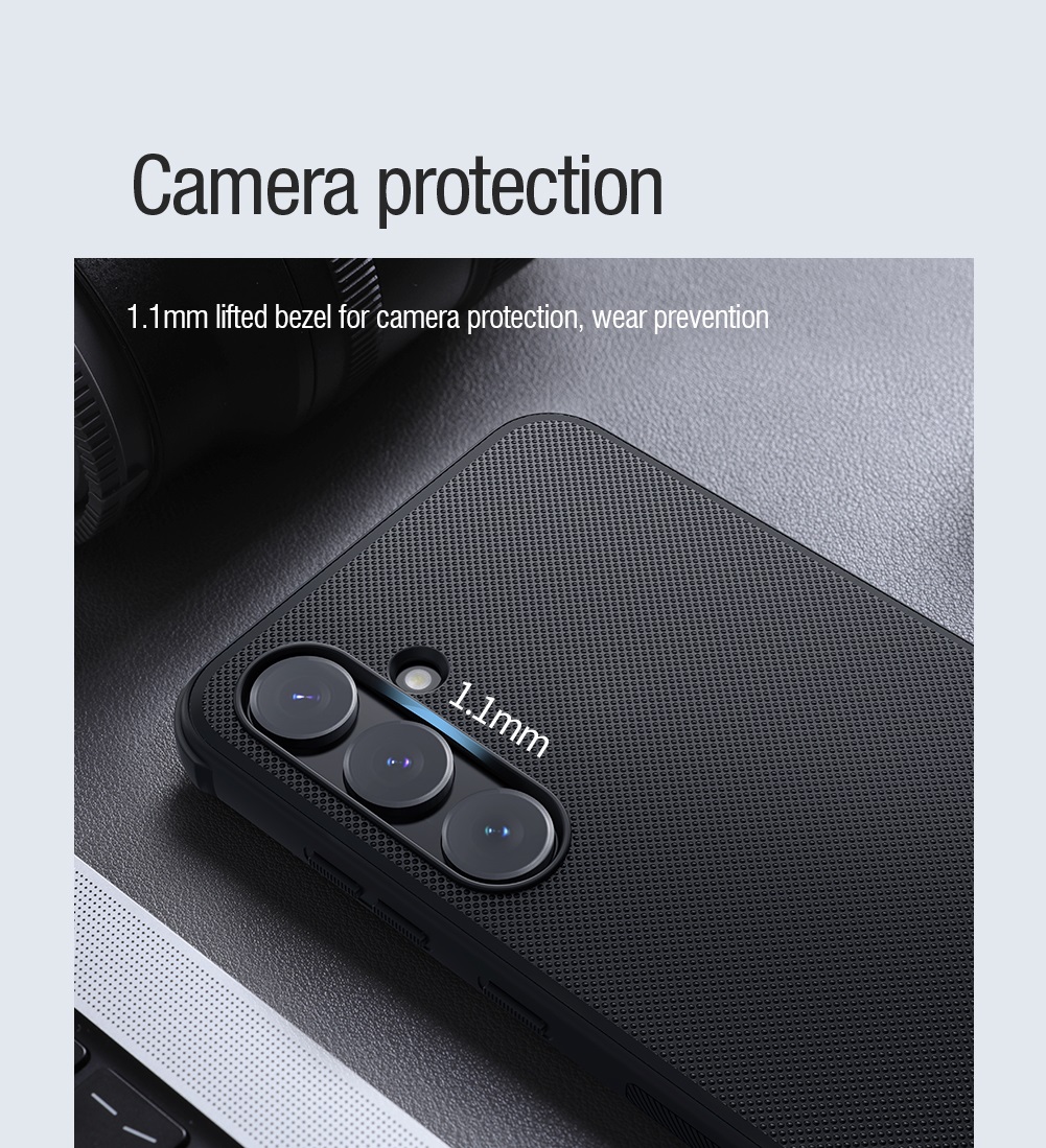 Juodas dėklas Samsung Galaxy A55 yra nugaros apsauginis dangtelis Super Frosted PRO Magnetic iš Nillkin prekės ženklo su integruotu magnetu Apple MagSafe priedams.