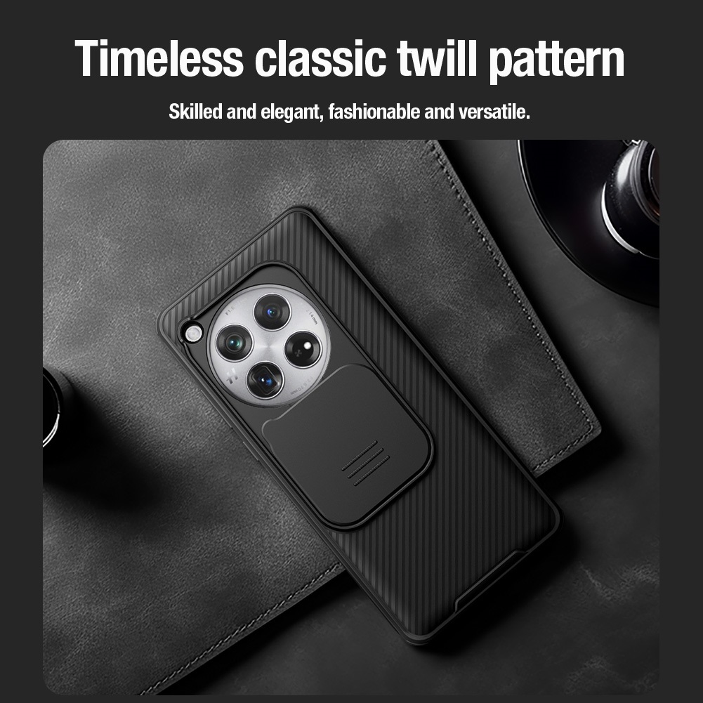Žymos: Apsauginis dėklas, juodas dėklas, Nillkin CamShield, OnePlus 12 aksesuarai, OnePlus dėklas, telefono apsauga, telefono dėklas
