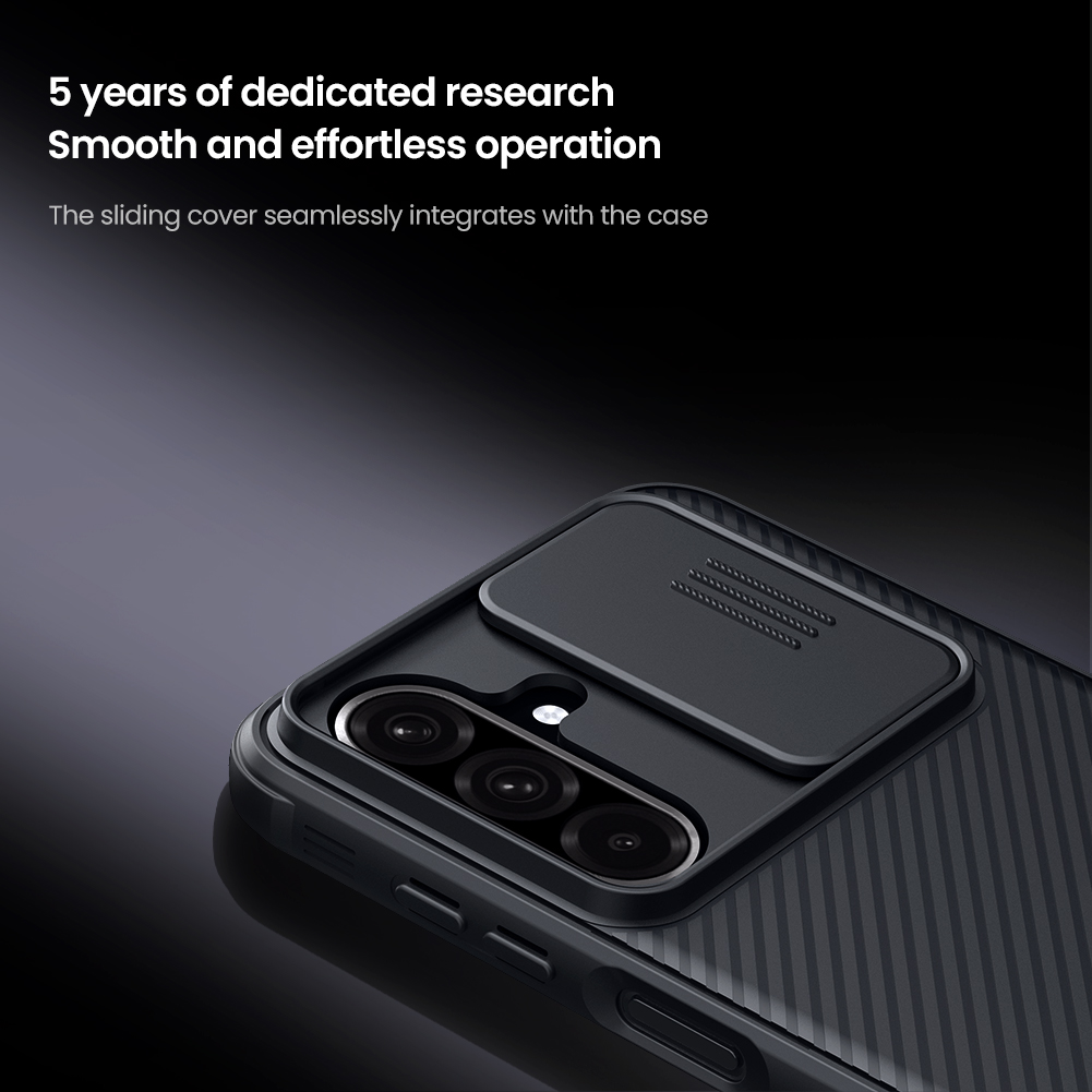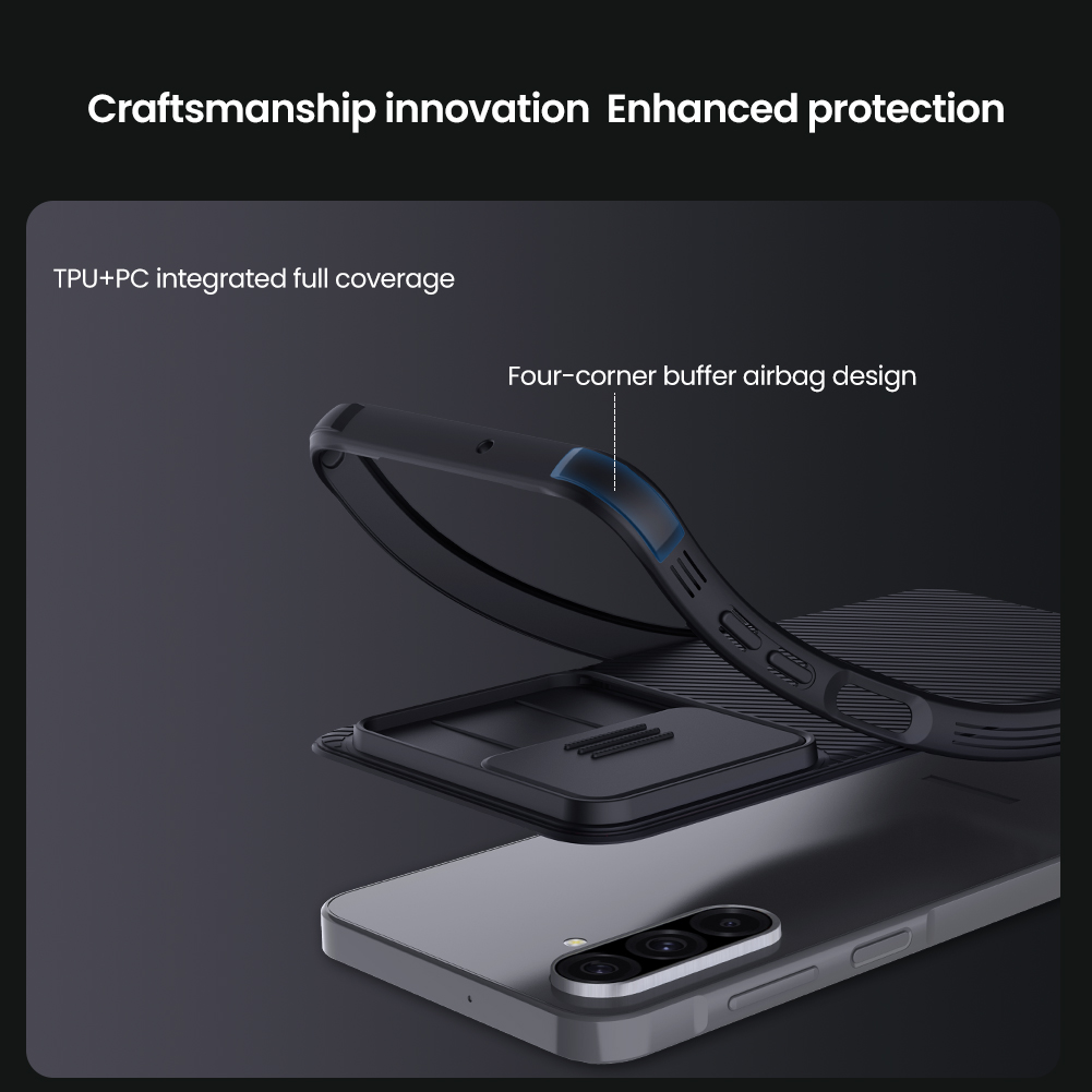 Žymos: atsparus dėvėjimui, fotoaparato apsauga, juodas dėklas, Nillkin CamShield, Plonas dėklas, Samsung Galaxy A26 5G, telefono apsauga, telefonų dėklas