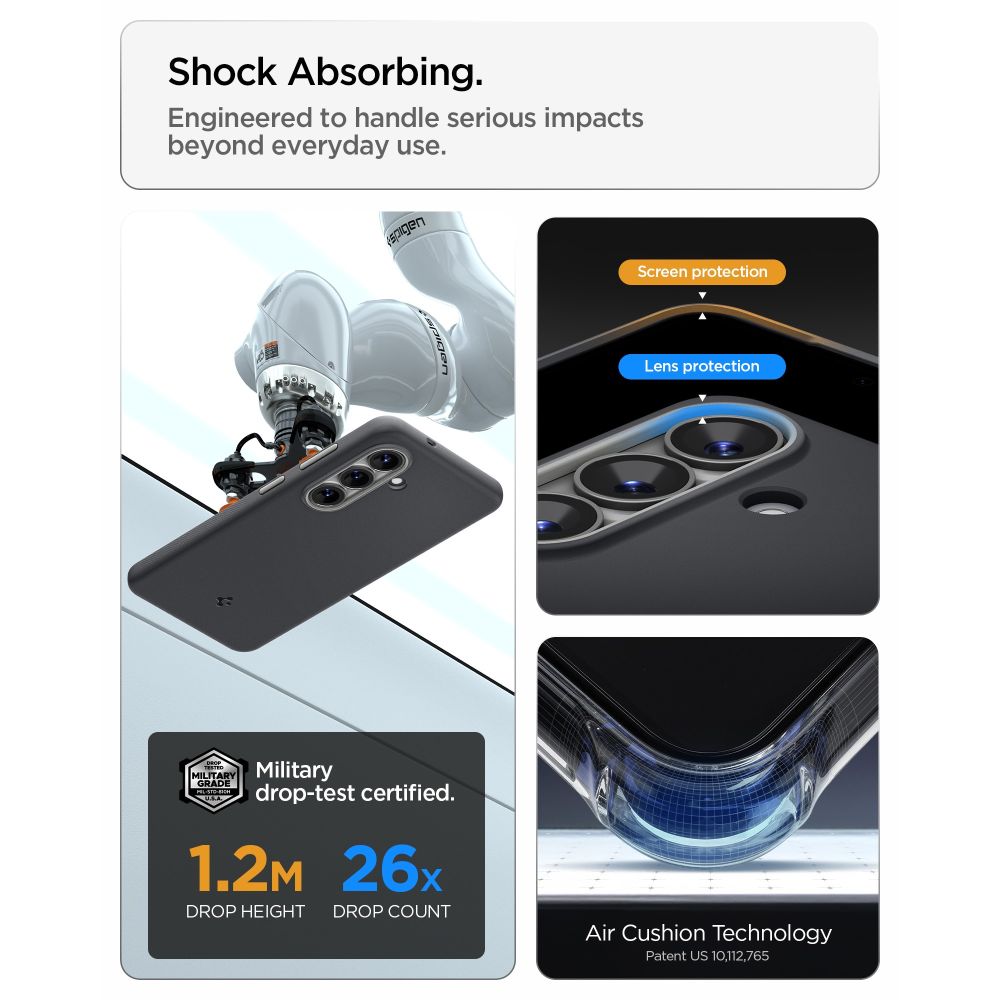 Malonus liesti ir patvarus poliuretano dėklas puikiai apsaugo nuo įbrėžimų ir pirštų atspaudų, o viduje yra apsauginis raštas, kuris išsklaido smūgių sukeltus smūgius. Be to, gamintojas pasirūpino, kad kampai būtų sustiprinti naudojant oro kampų technologiją, užtikrinant įrenginio apsaugą kritimo atveju.