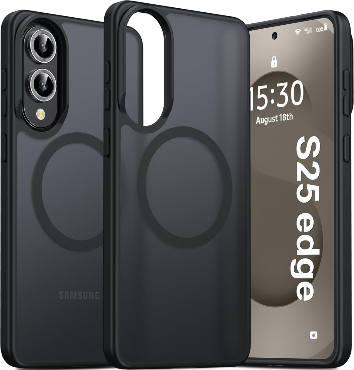Juodas dėklas Samsung S937 S25 Edge „Matte MagSafe”