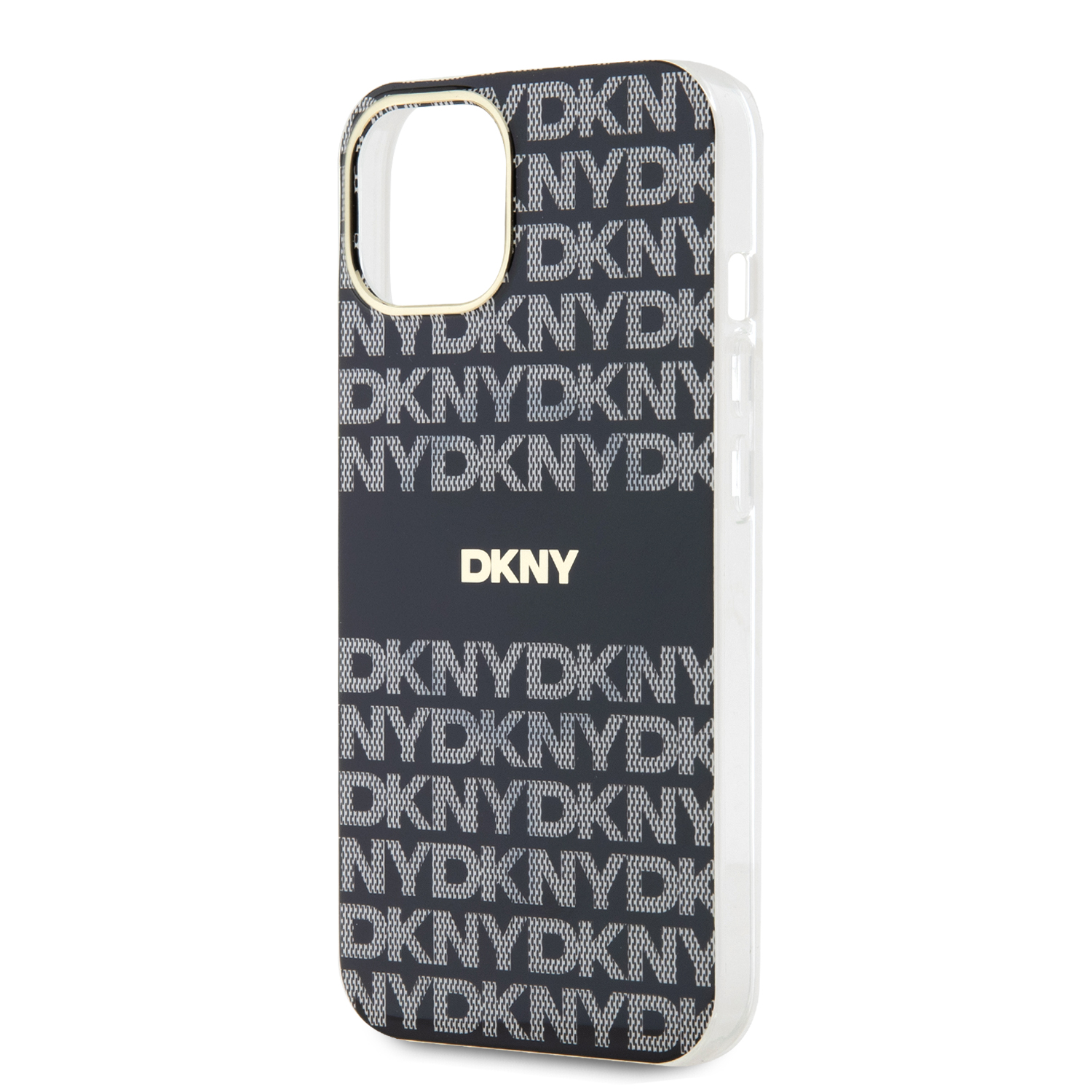Juodas dėklas telefonui Apple Iphone 15 „DKNY PC/TPU Repeat Pattern Tonal Stripe Magsafe”