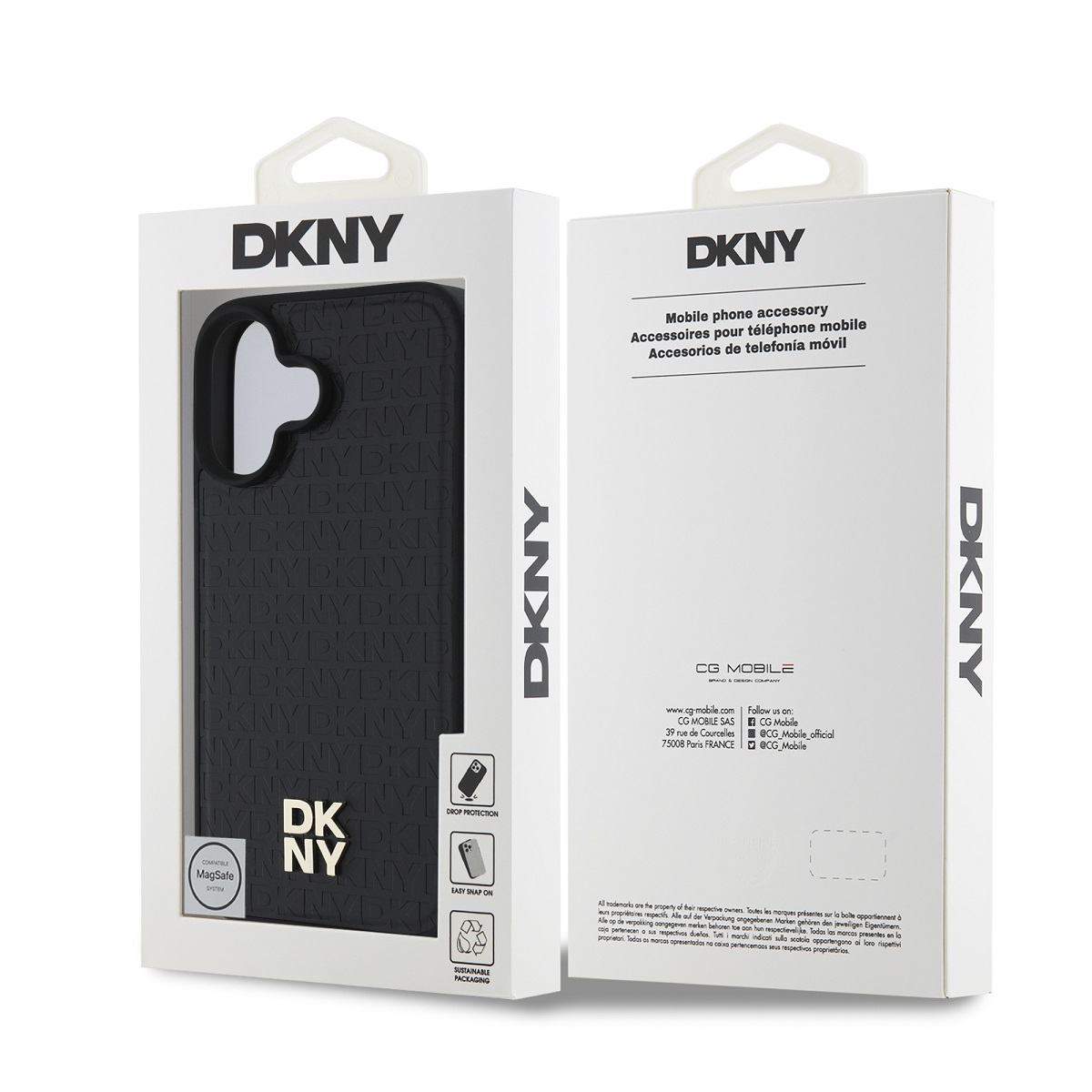 Patrauklus DKNY logotipas dėklo nugarėlėje suteikia prabangos ir pažymi jį kaip išskirtinį priedą.