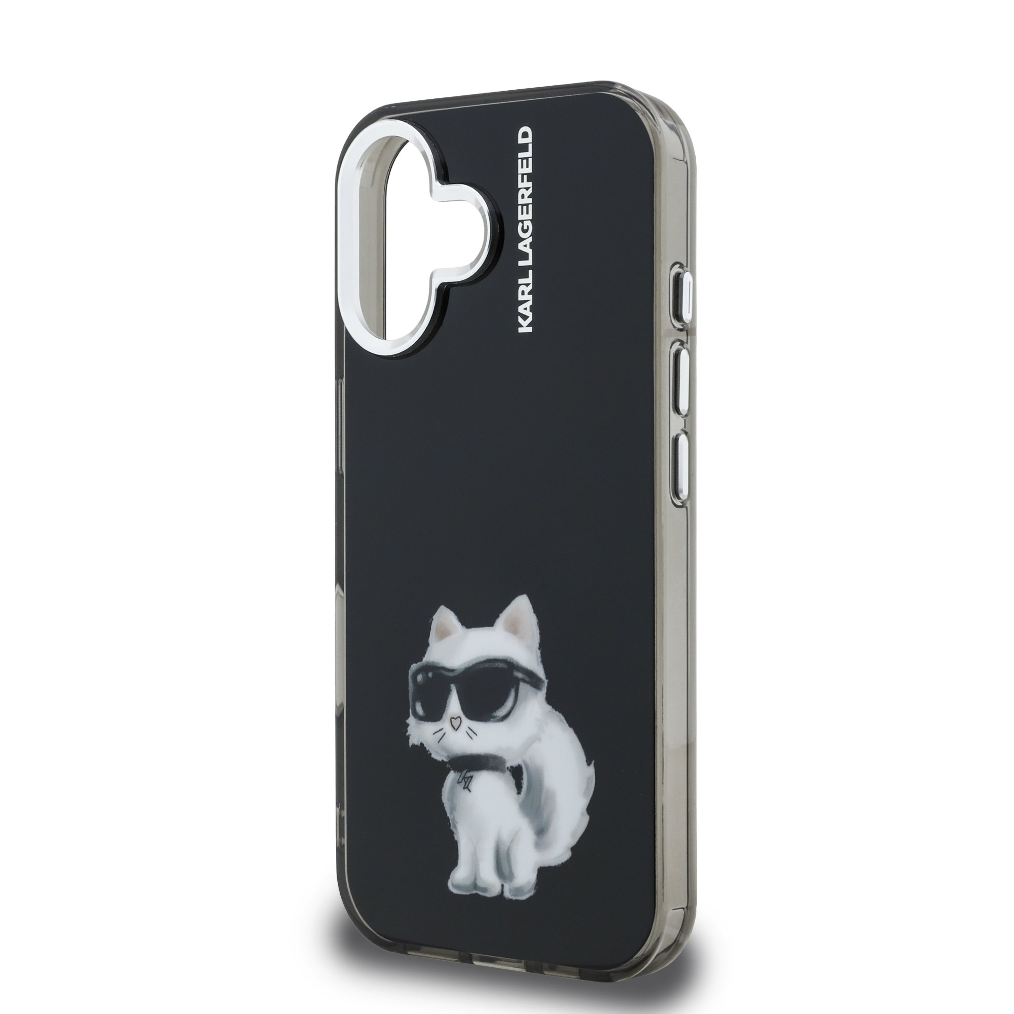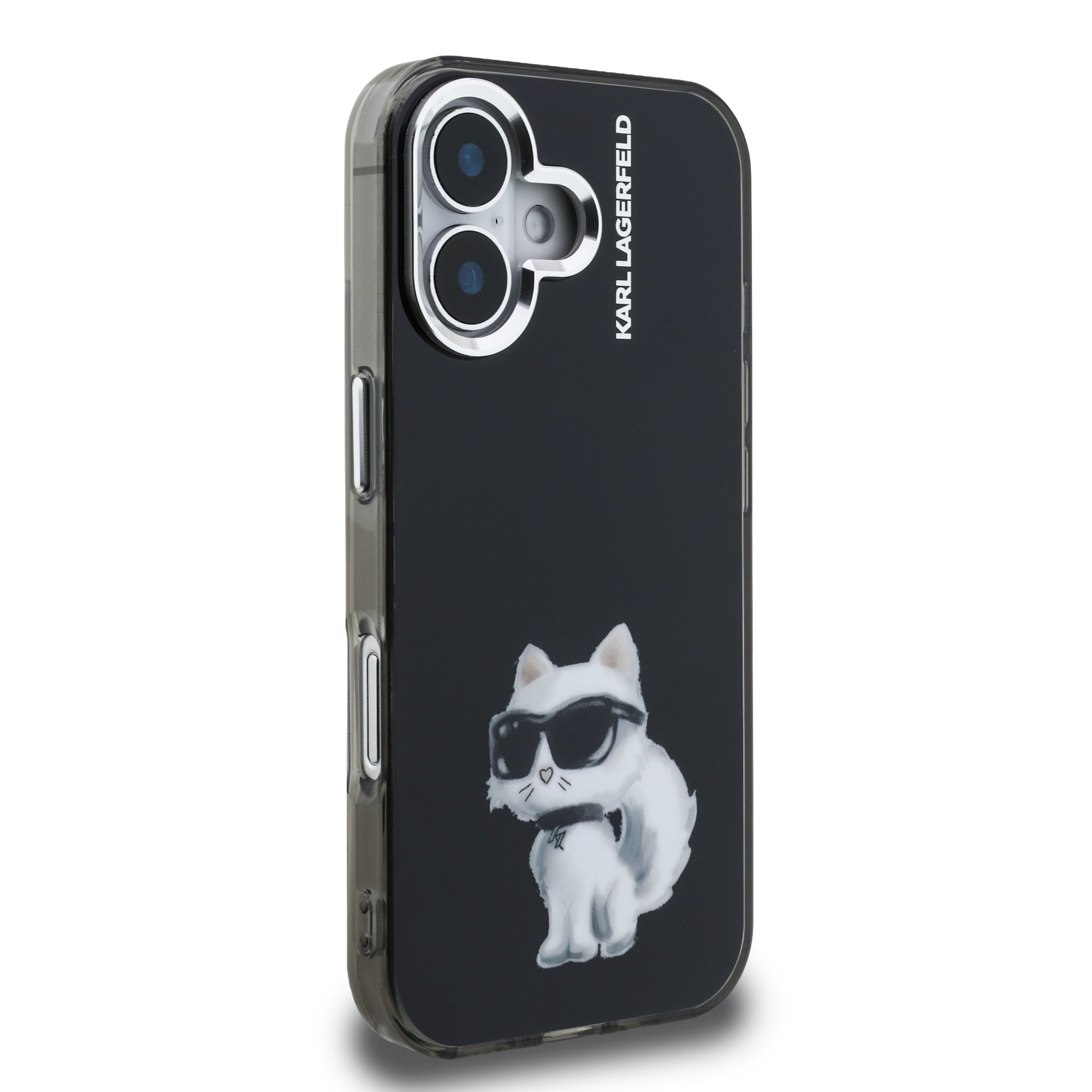 Juodas dėklas telefonui Apple Iphone 16 „Karl Lagerfeld IML Aquarelle Choupette”