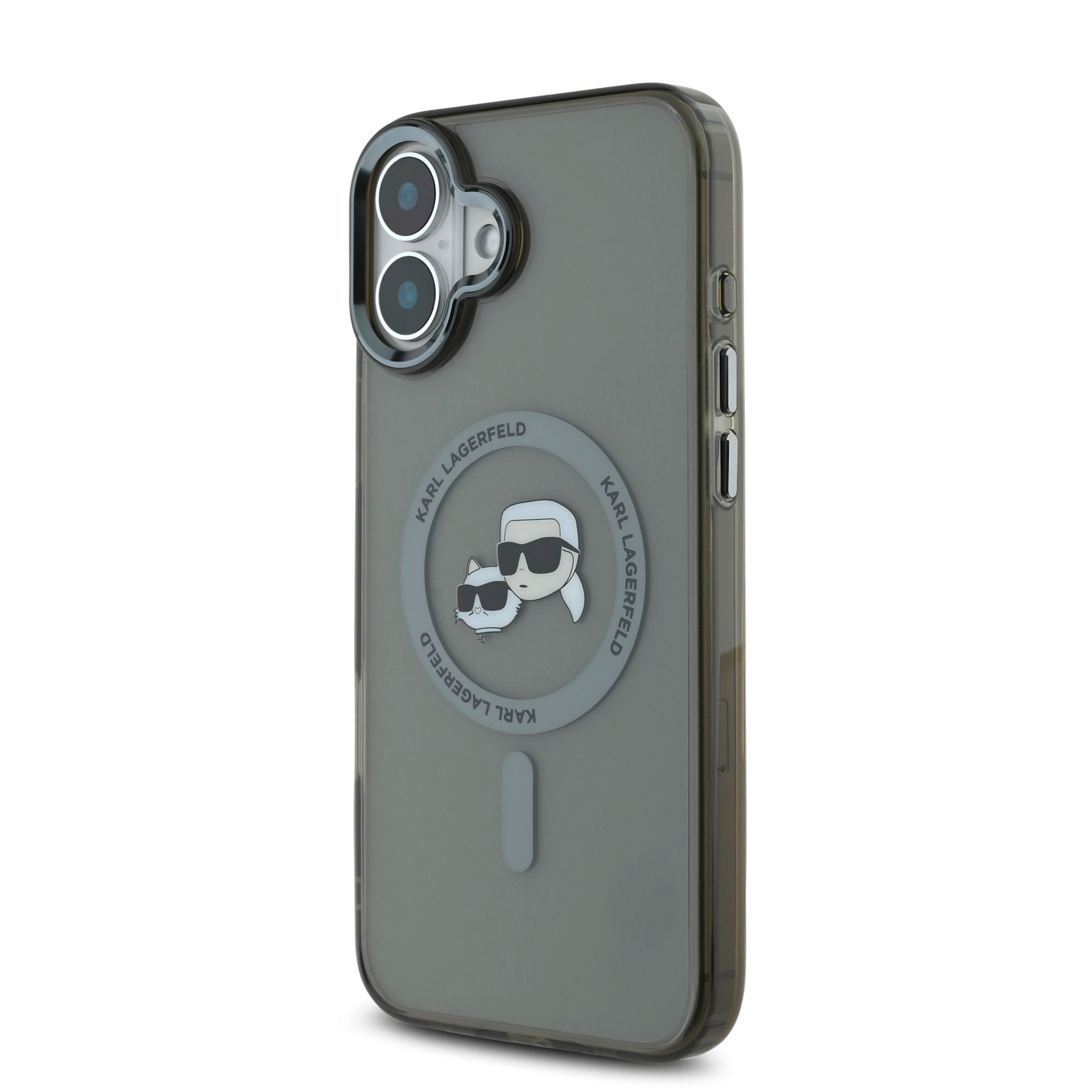 Juodas dėklas telefonui Apple Iphone 16 „Karl Lagerfeld IML K&CH Heads Metal Frame MagSafe”