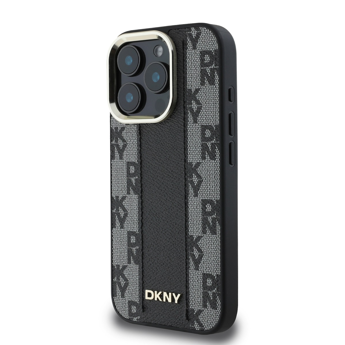 Patrauklus DKNY logotipas dėklo nugarėlėje suteikia prabangos ir pažymi jį kaip išskirtinį priedą.