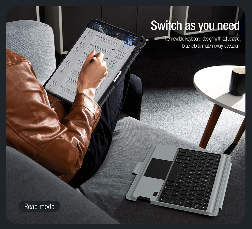 Jei norite naudoti planšetinį kompiuterį kaip mobilųjį biurą arba kaip sunkaus nešiojamojo kompiuterio pakaitalą, arba tiesiog mėgstate naudotis planšetiniu kompiuteriu, Nillkin Bumper Combo apsauginis dangtelis yra kaip tik jums.