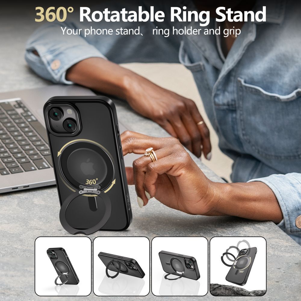 Pagrindinis dėklo elementas – 360 laipsnių pasukamas judantis žiedas, leidžiantis jį naudoti įvairiai – kaip stovą patogiam filmų žiūrėjimui, kaip pirštų laikiklį saugesniam telefono laikymui ir kaip elementas, palaikantis MagSafe funkciją.