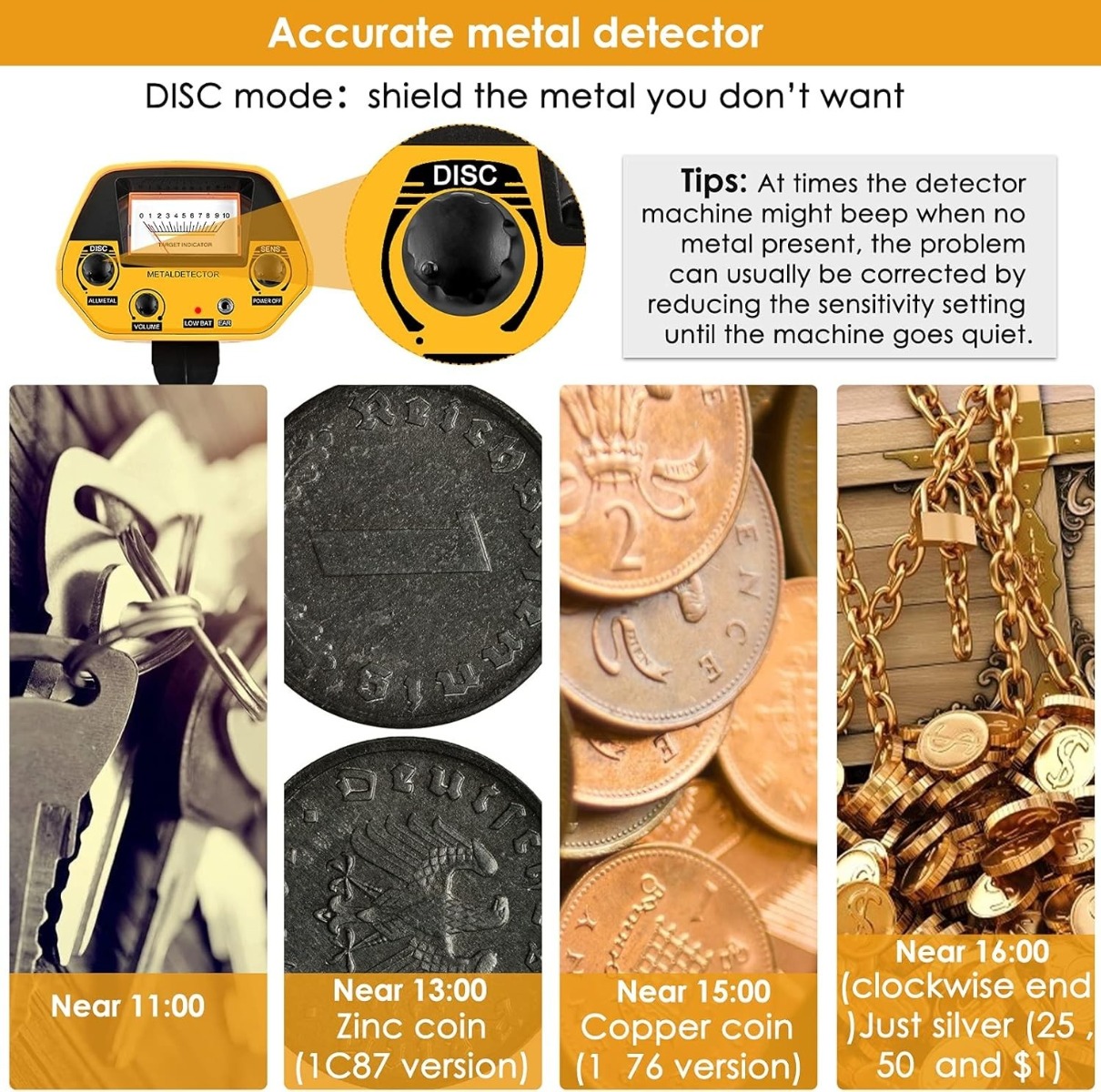 DISC – leidžia atskirti skirtingus metalus, pvz., išvengti nereikalingų geležies signalų.