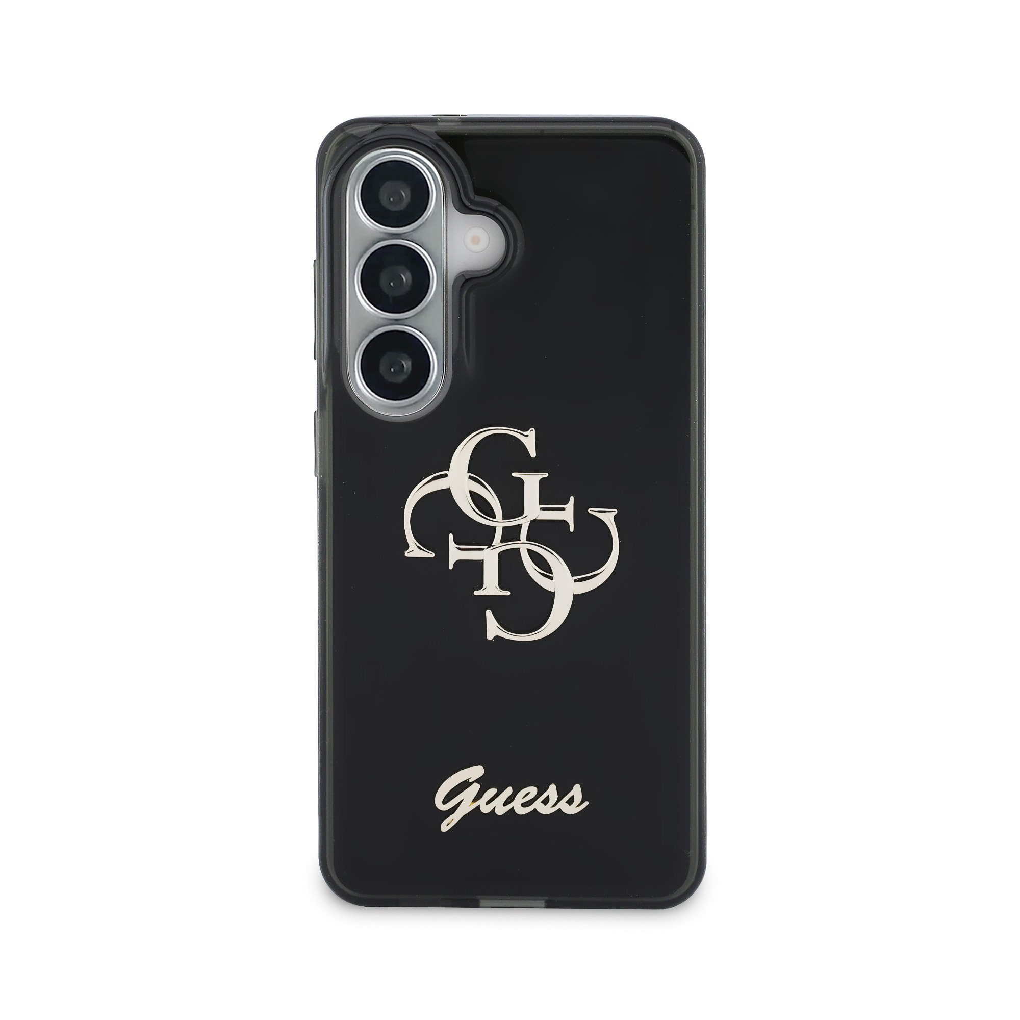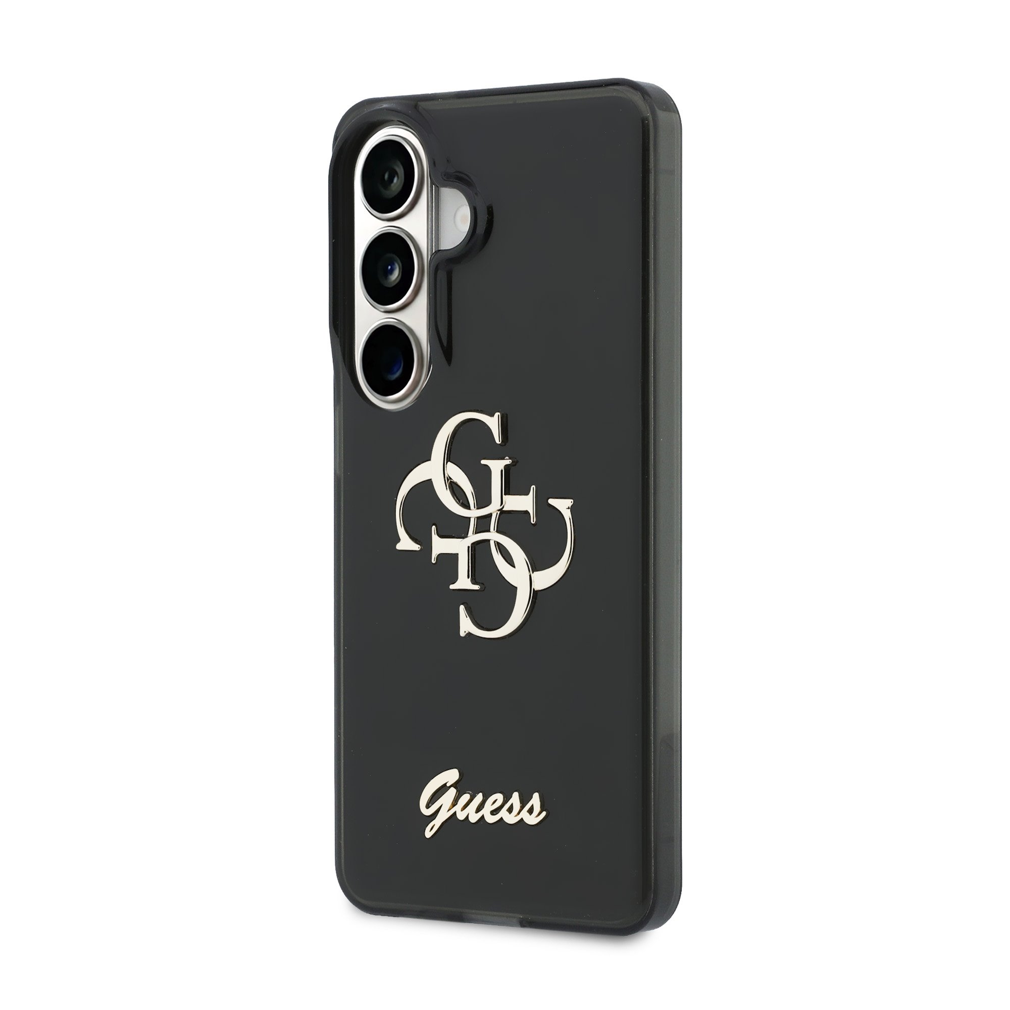 Juodas originalus dėklas Guess IML 4G Script Metal Logo telefonui Samsung Galaxy S26