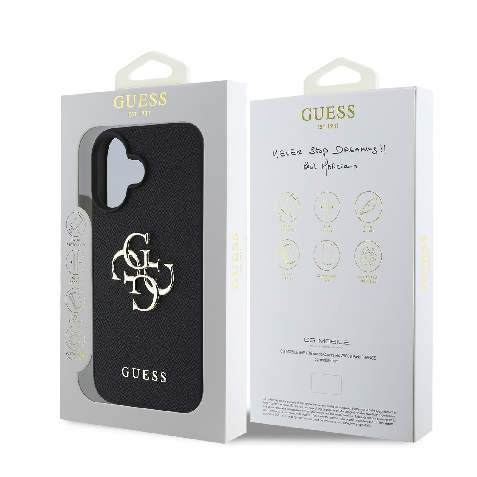 Jis pagamintas iš lengvo ir patvaraus PU su grūdėtos odos tekstūra ir suteikia puikią apsaugą bei patogumą naudojant. Dangtelio paviršiaus apdaila užtikrina, kad jis puikiai tilptų į ranką ir neslystų, o tai sumažina telefono išslydimo riziką. Dėl tikslios formos jis puikiai priglunda prie telefono ir leidžia lengvai pasiekti visus mygtukus ir jungtis. Švarus dizainas su dominuojančiu 4G Guess metaliniu logotipu pritrauks kiekvieną ir yra lengvai derinamas prie bet kokios aprangos. Taigi, jei ieškote viršelio, kuriame derinama elegancija ir funkcionalumas, šis Guess gaminys yra tinkamas pasirinkimas.