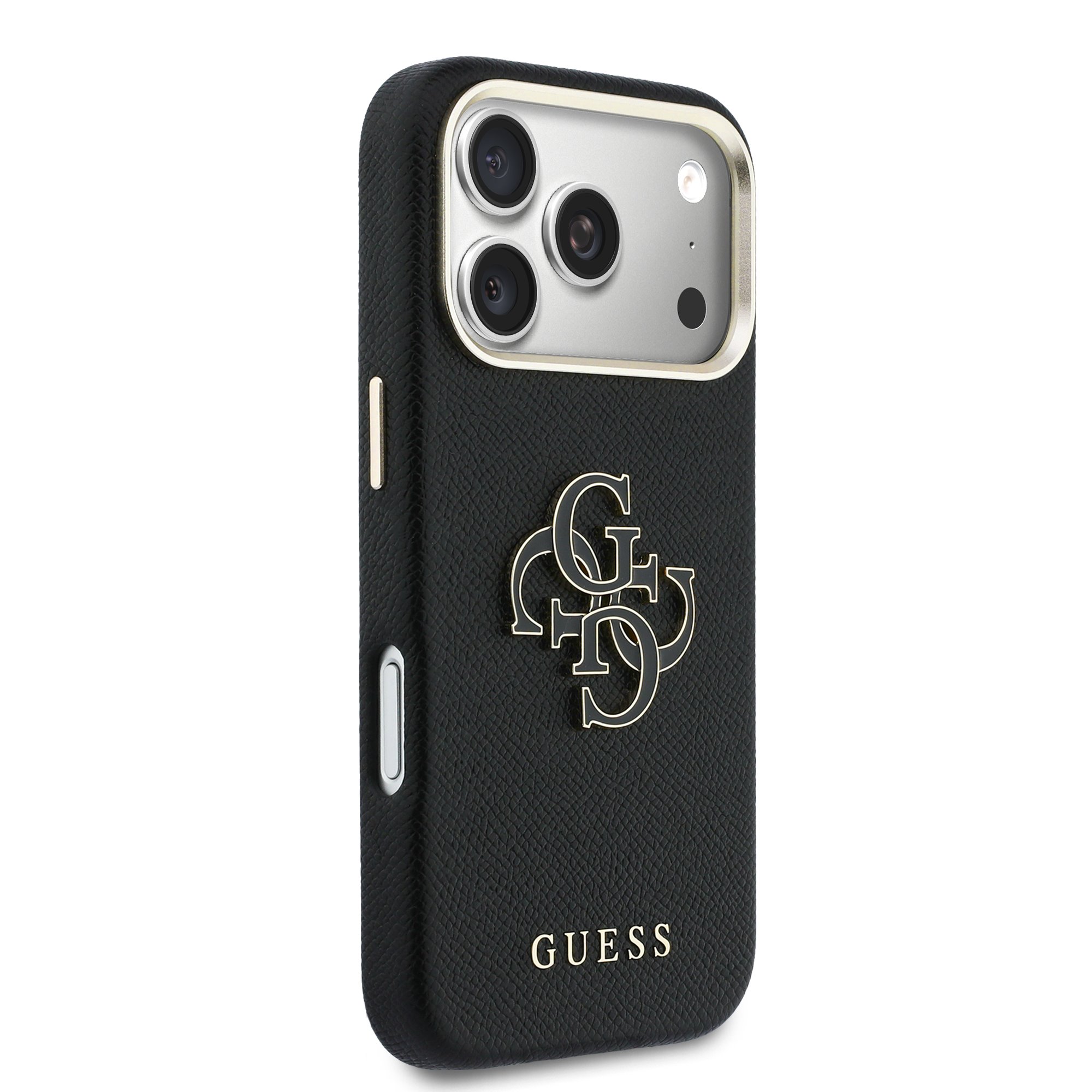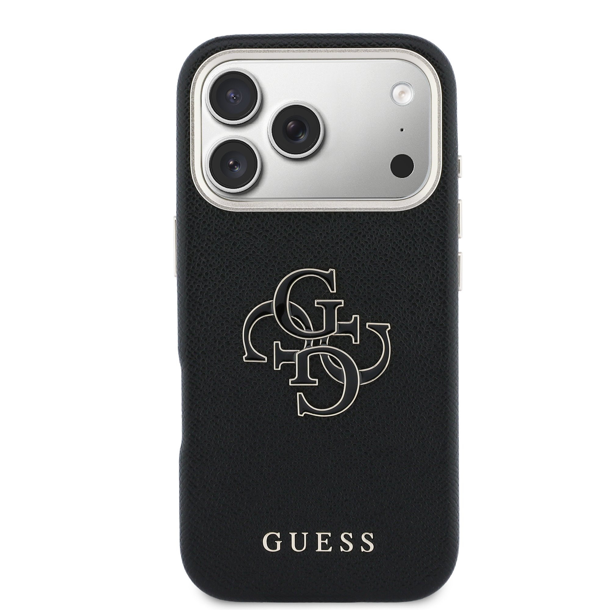 Juodas originalus dėklas Guess PU Resin Logo telefonui Apple Iphone 17 Pro Max