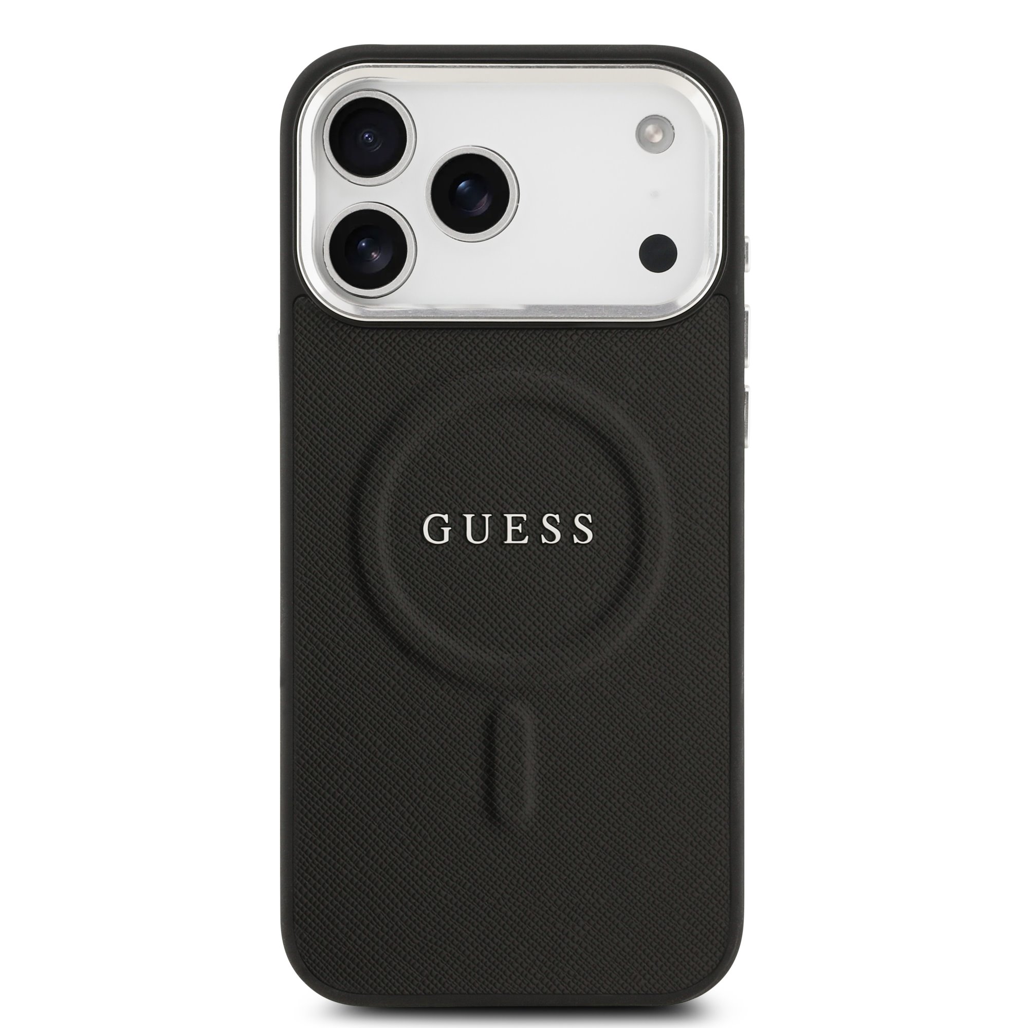 Juodas originalus dėklas Guess PU Saffiano MagSafe telefonui Apple Iphone 17 Pro Max