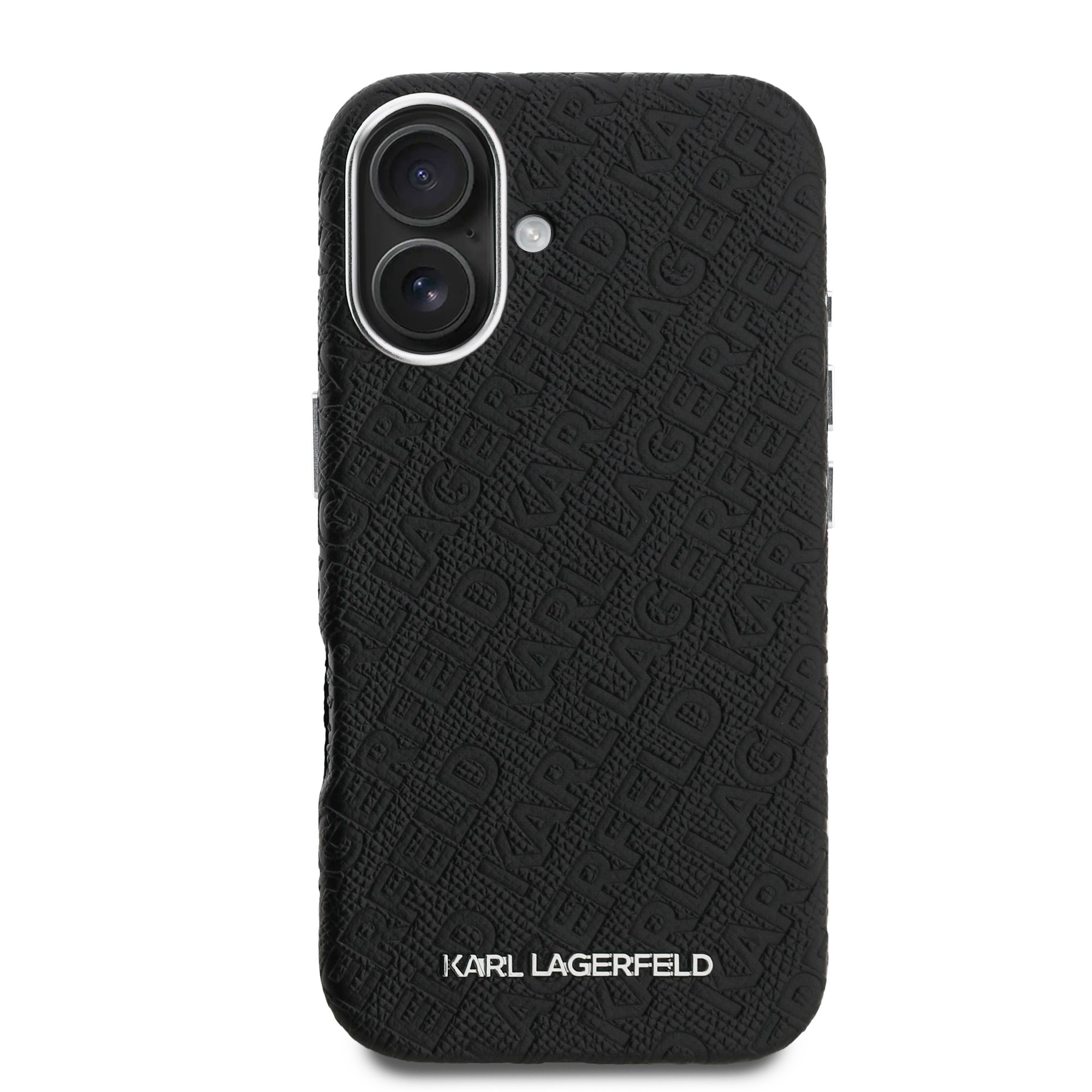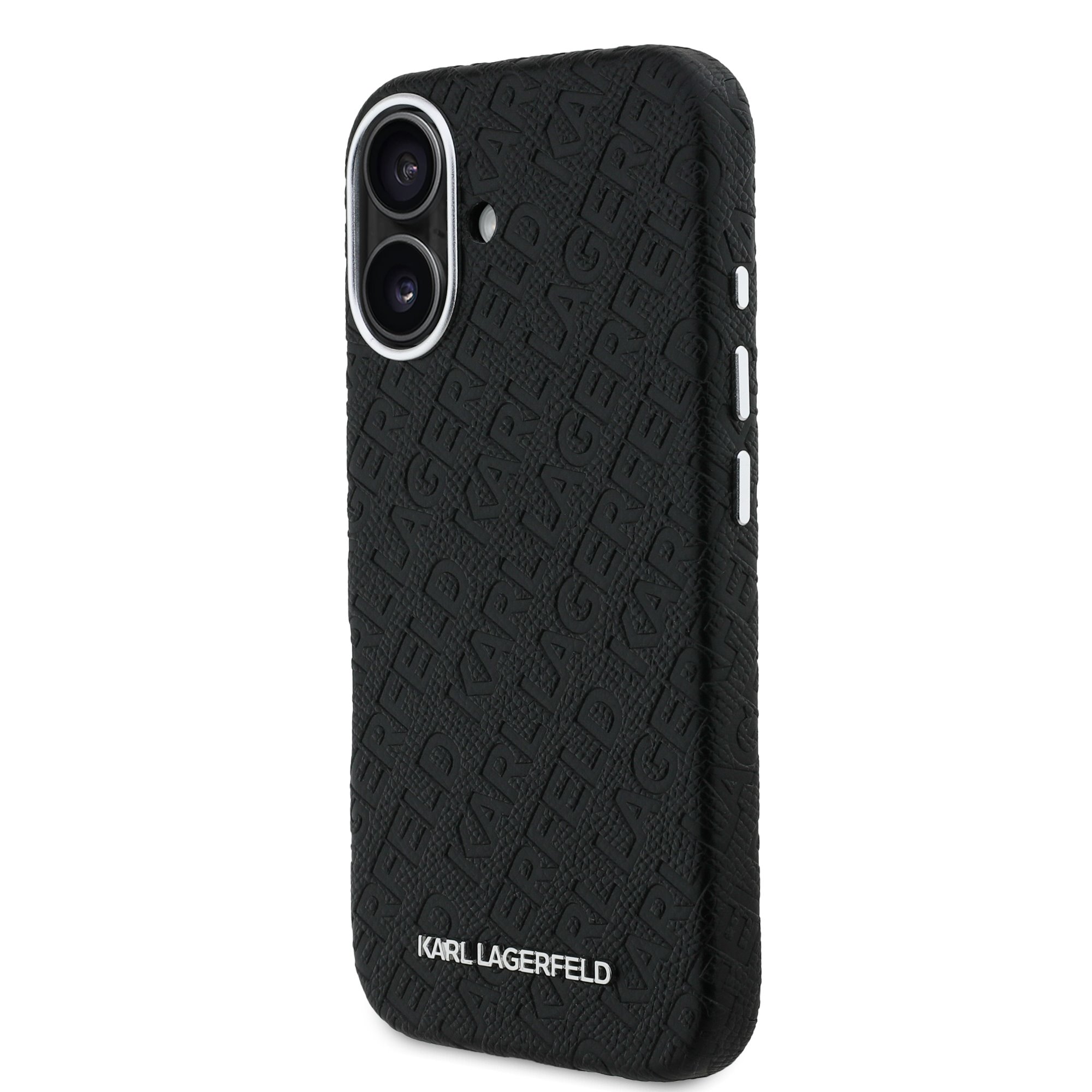 Juodas originalus dėklas Karl Lagerfeld Grained PU Repeated Logo MagSafe telefonui Apple Iphone 16