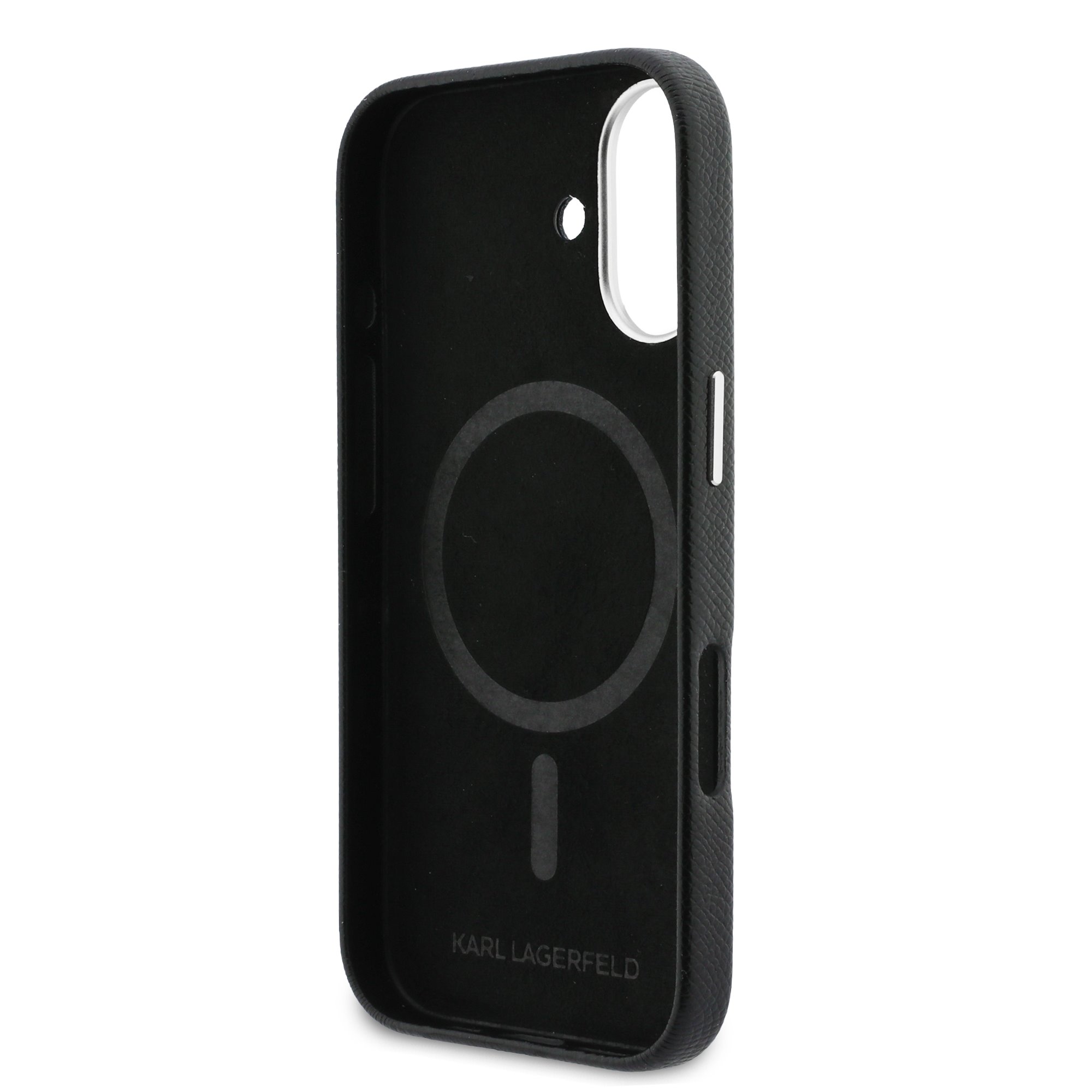 „Karl Lagerfeld“ grūdėto PU pasikartojančio logotipo „MagSafe“ galinis dangtelis yra puikus telefono ir aprangos aksesuaras, apjungiantis funkcionalumą ir stilių.