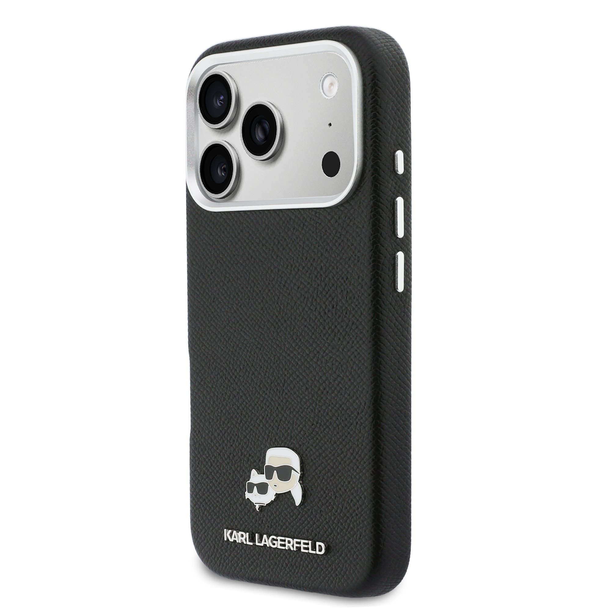 Juodas originalus dėklas Karl Lagerfeld PU Karl and Choupette Heads Pins MagSafes telefonui Apple Iphone 17 Pro Max